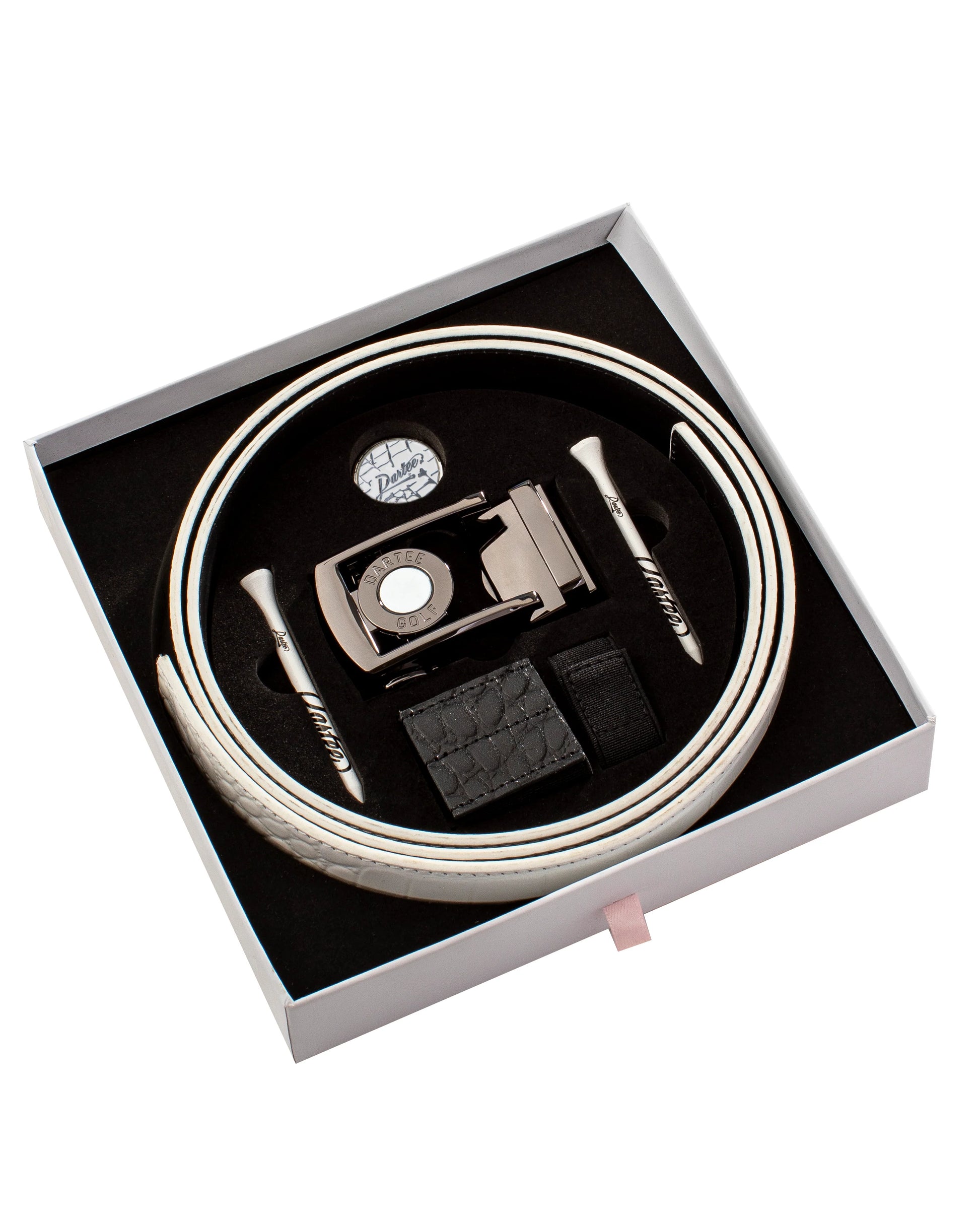 The Greenside Gator Collection is inspired by the pressure-packed patch of grass where the game is won or lost — and by the untamed edge that lives just beyond it. Crafted from genuine hand-painted leather, these belts bring elevated texture and aggressive elegance to players who thrive in the tension of the short game.