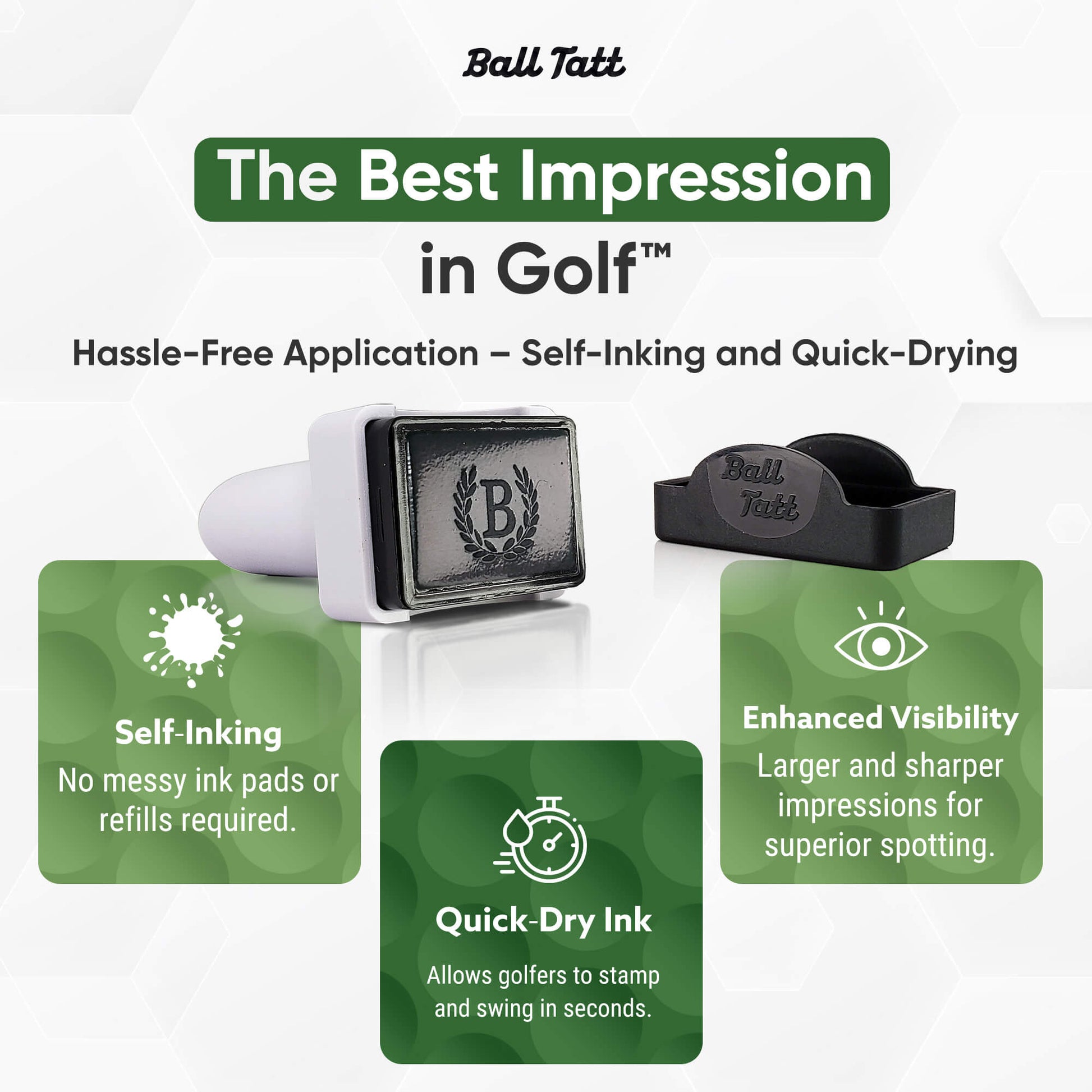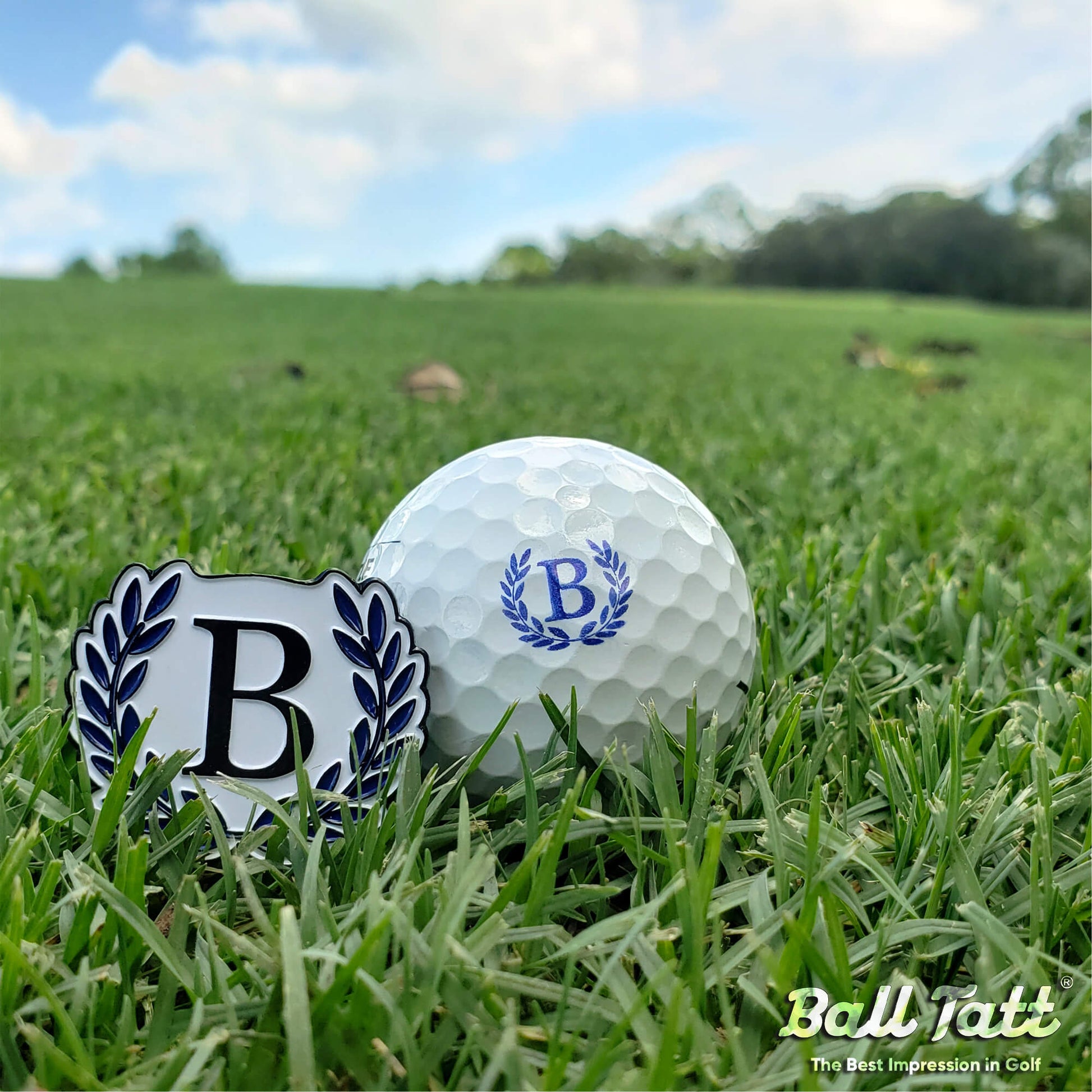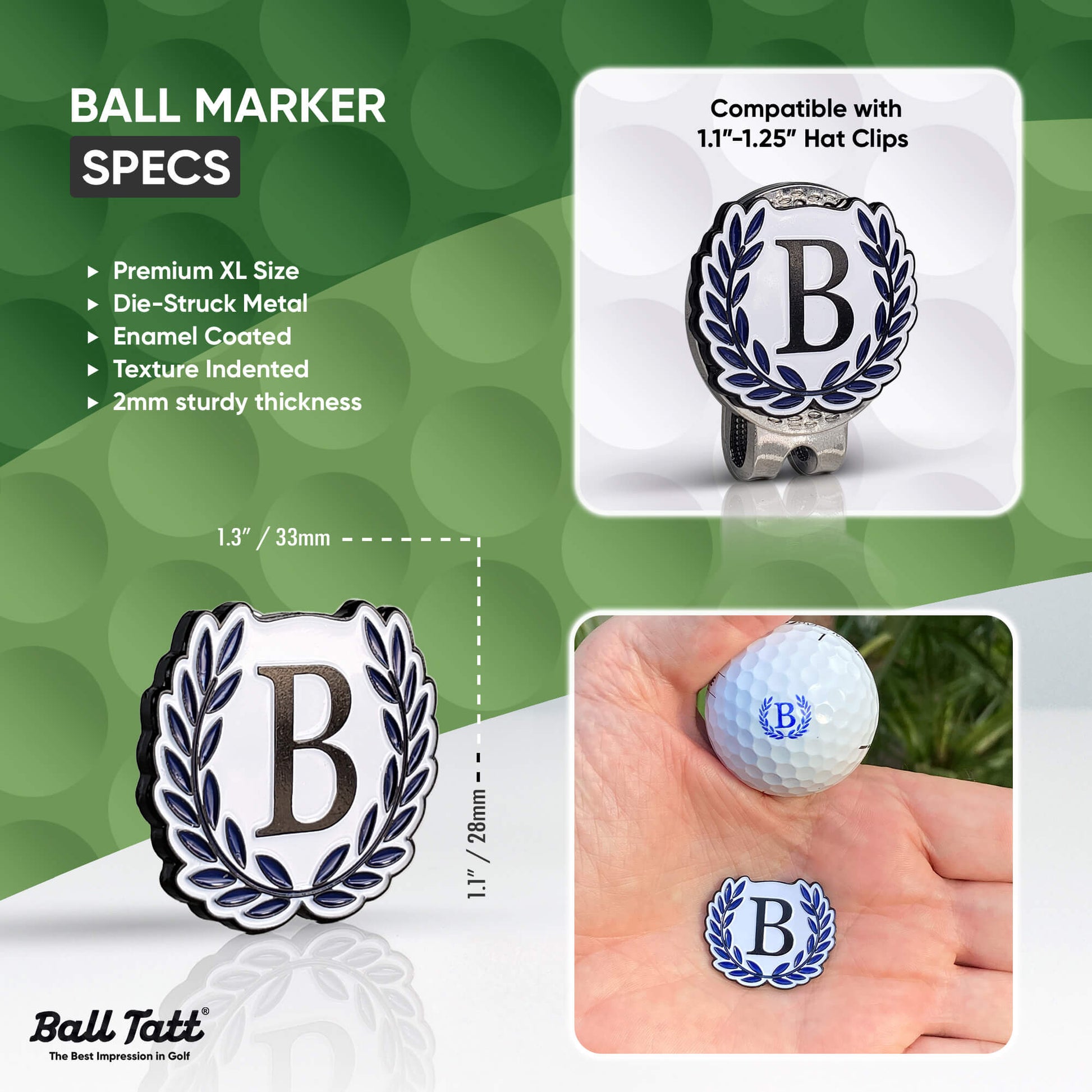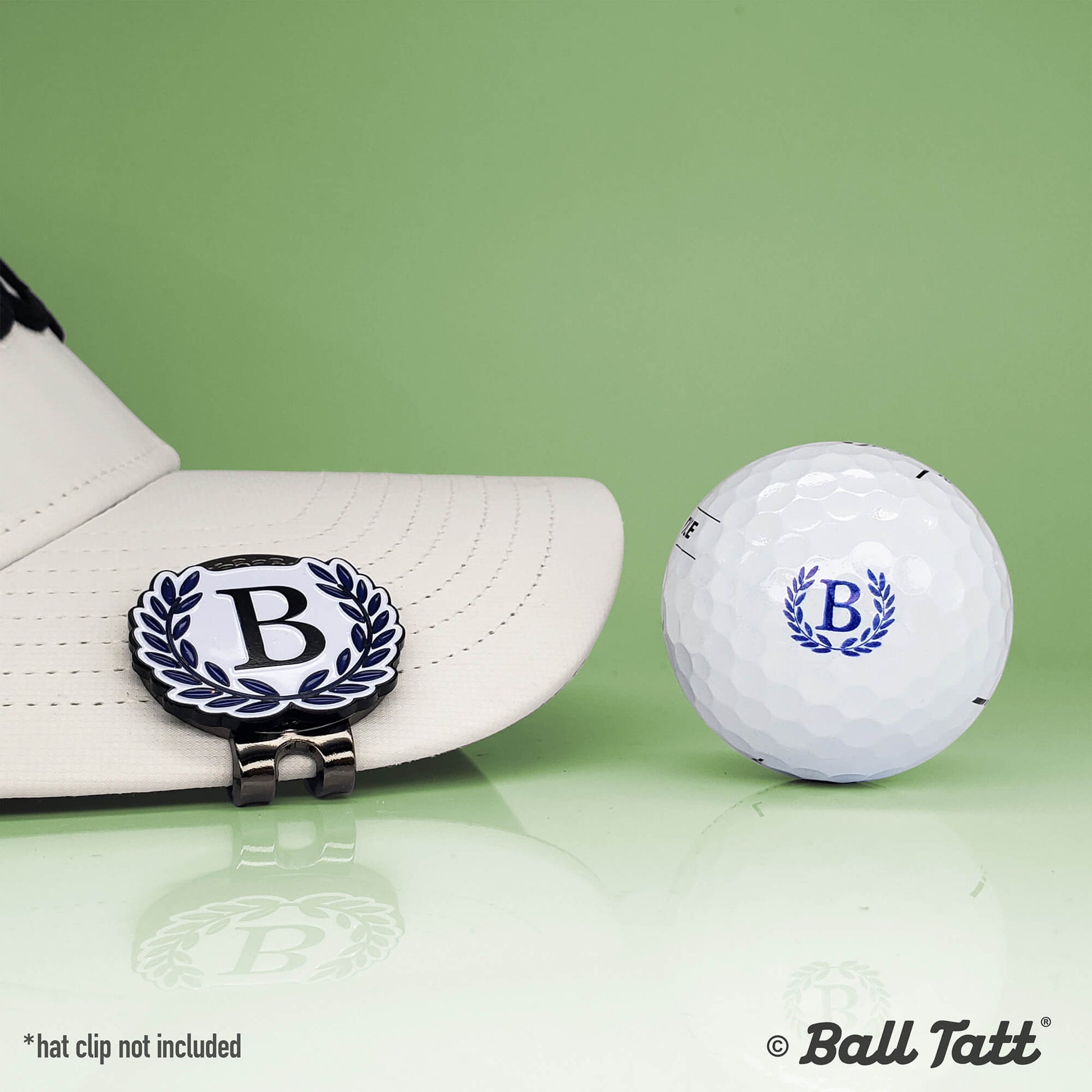 Make your mark with the Ball Tatt Monogram Golf Ball Stamper, featuring a striking "B" framed by a classic wreath. Crafted from durable die-struck metal with a textured enamel coating, this bold sized (33mm x 27.6mm x 2mm) debossed design combines lasting quality with style. Designed to fit magnetic hat clips and pairs perfectly with your ball stamper for a cohesive look. Personalize your game and showcase your unique identity with this essential golf accessory.