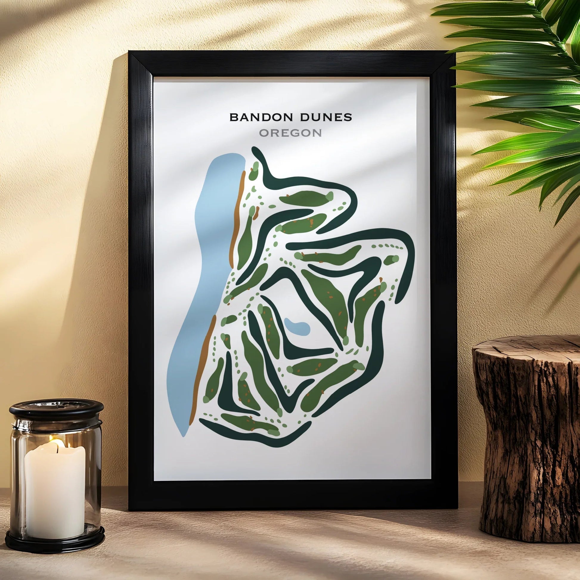 nestled along the scenic southern coast of Oregon. These captivating watercolor-style golf course maps, featuring Bandon Dunes as their centerpiece, are collectible art pieces and perfect for any avid golfer or golf fan. These maps serve as cherished keepsakes and personal mementos that you can proudly showcase on the walls of your home or office.