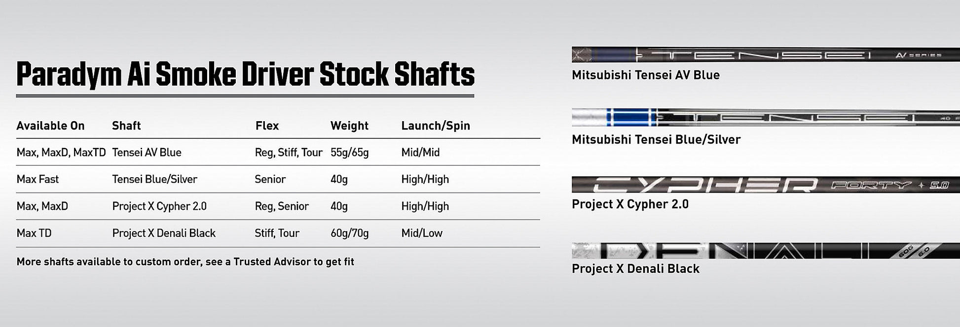 Max MOI/Draw Please note: Adjustment tool is NOT included.
