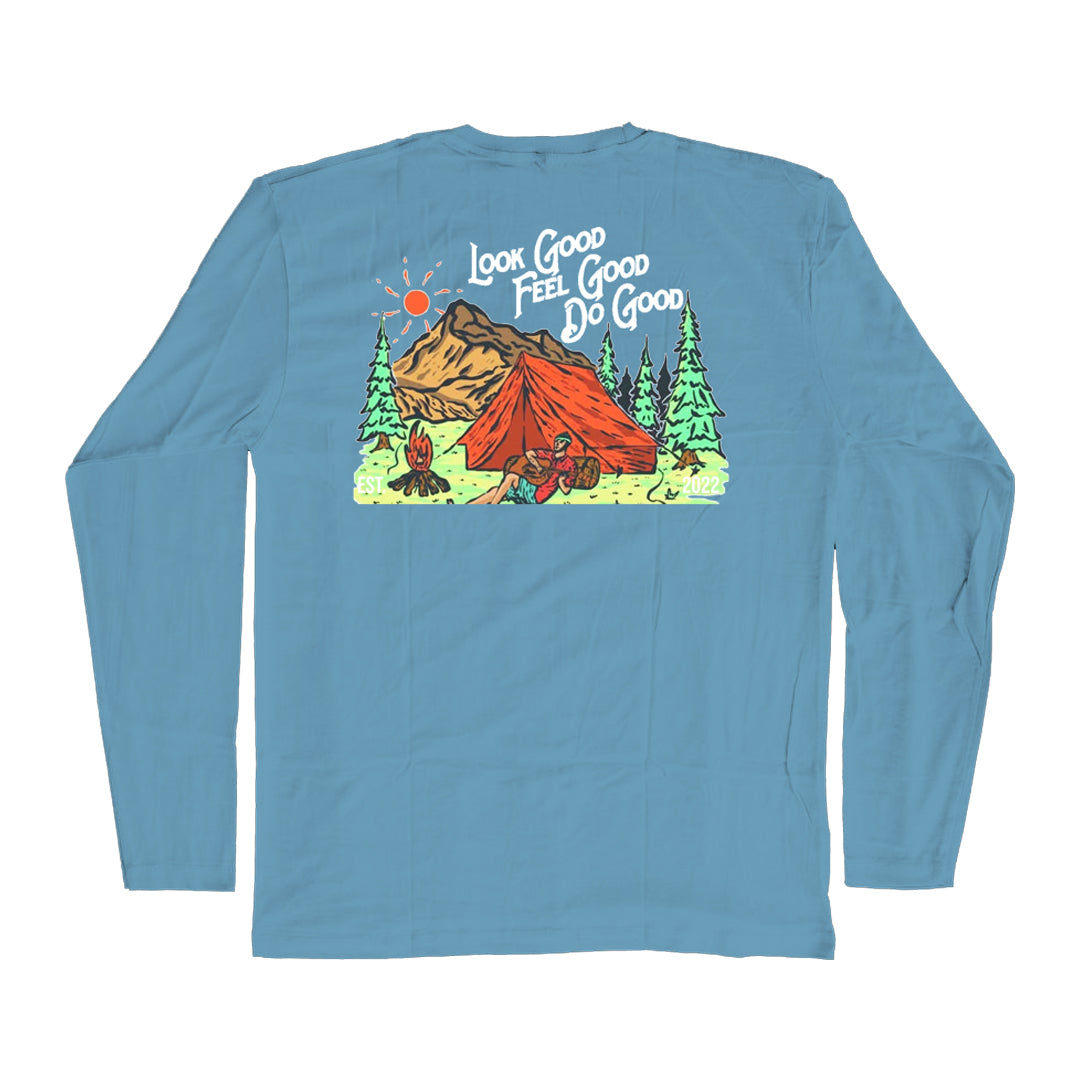 Keep yourself warm and stylish with our Campfire Colors Long Sleeve T-Shirt. Made with a comfortable blend of Polyester and Cotton, the iconic campfire mural design will have you looking and feeling cozy all season long.