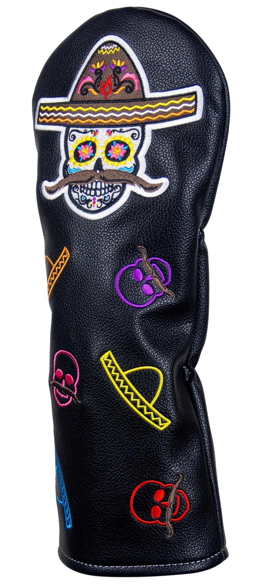 These vibrant candy skull headcovers have all the personality and class that you could possibly bring to the course. Intricately embroidered skull and sombrero and dancing skulls will be sure to have your bag standing out in all the right ways!