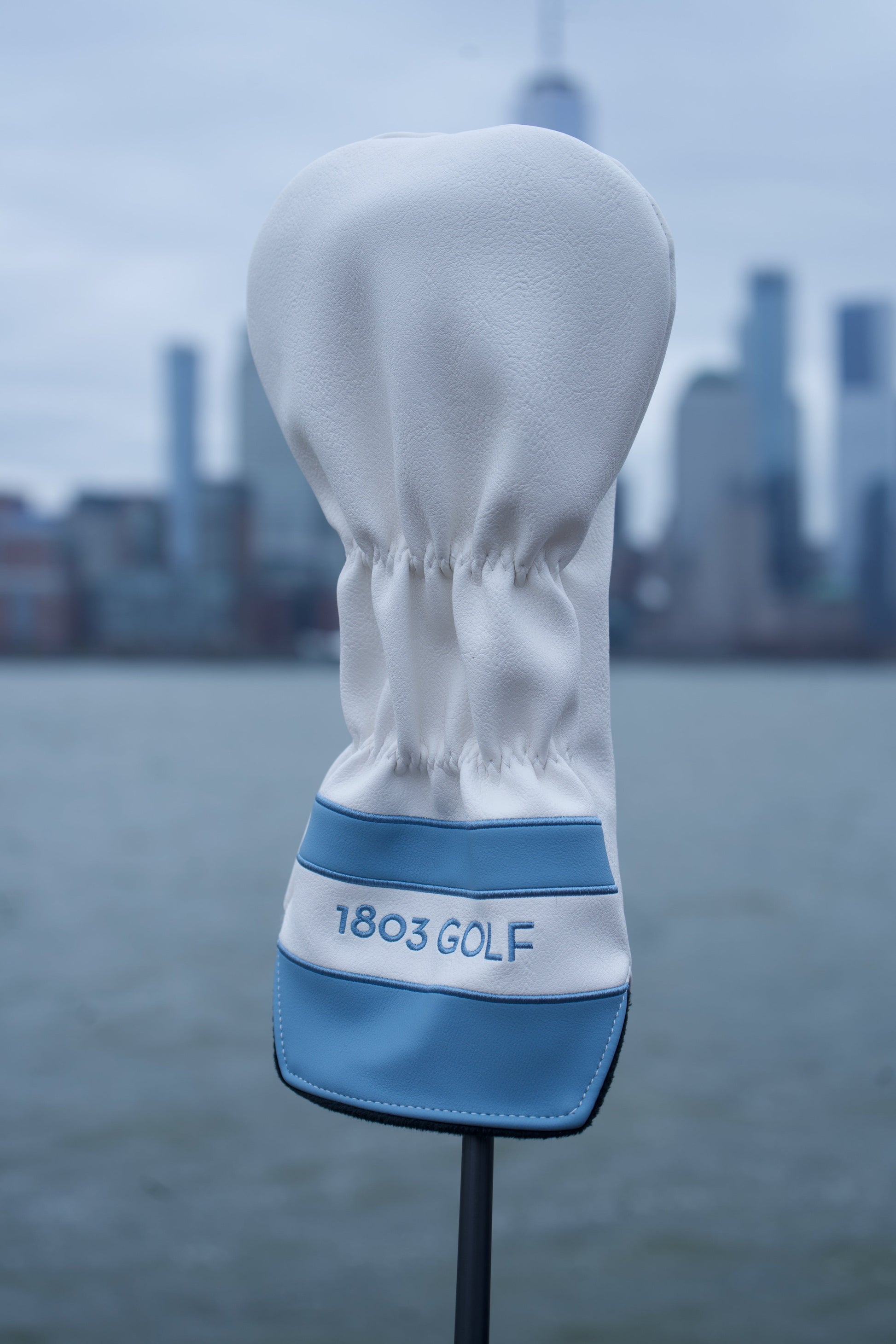 Represent your favorite city on the course with this Charlotte driver head cover. The cover features the word "Charlotte" in bold Carolina letters with dark blue outer stitching. The cover is made with a white leather outer layer and a soft, padded inner layer to keep your driver safe from damage. It's a stylish and practical way to show off your city pride on the golf course.