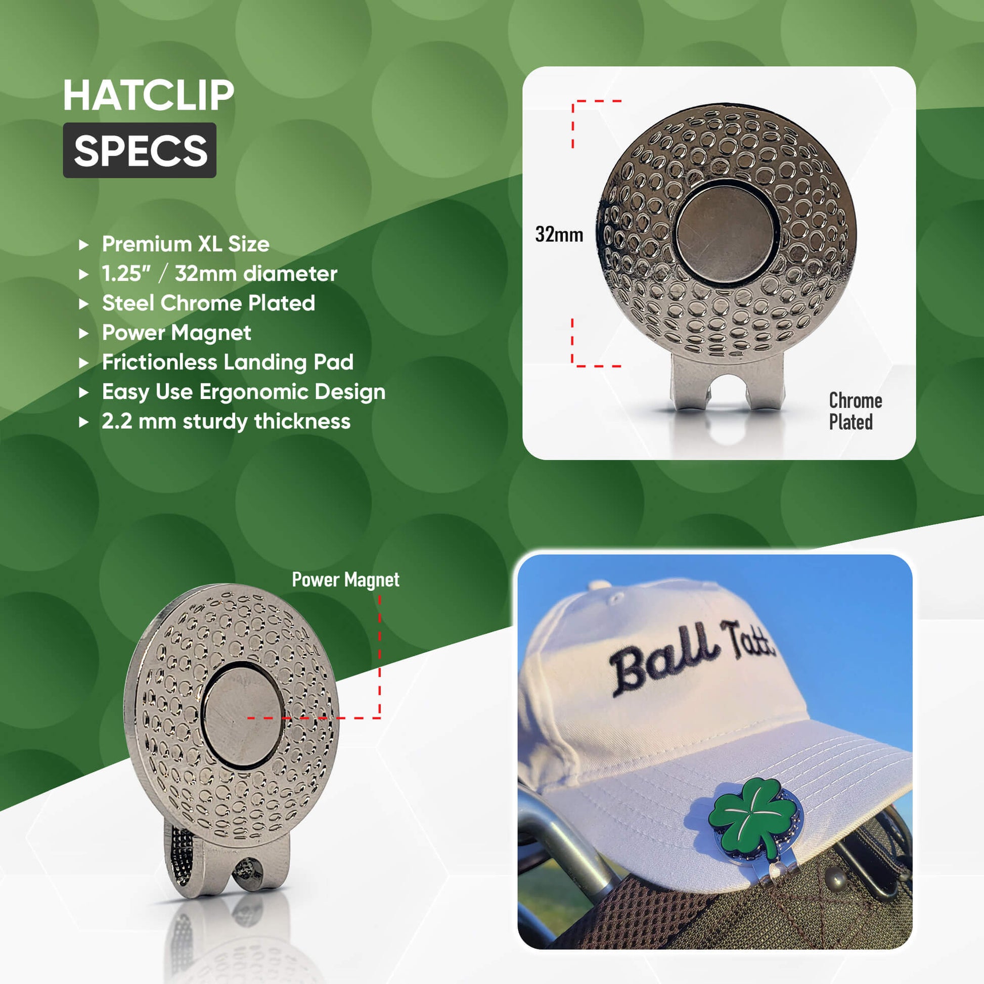 - 1.25" mm DIAMETER HATCLIP: Magnetic with frictionless larger landing pad designed for easy snap on and removal of bigger sized custom ball markers.