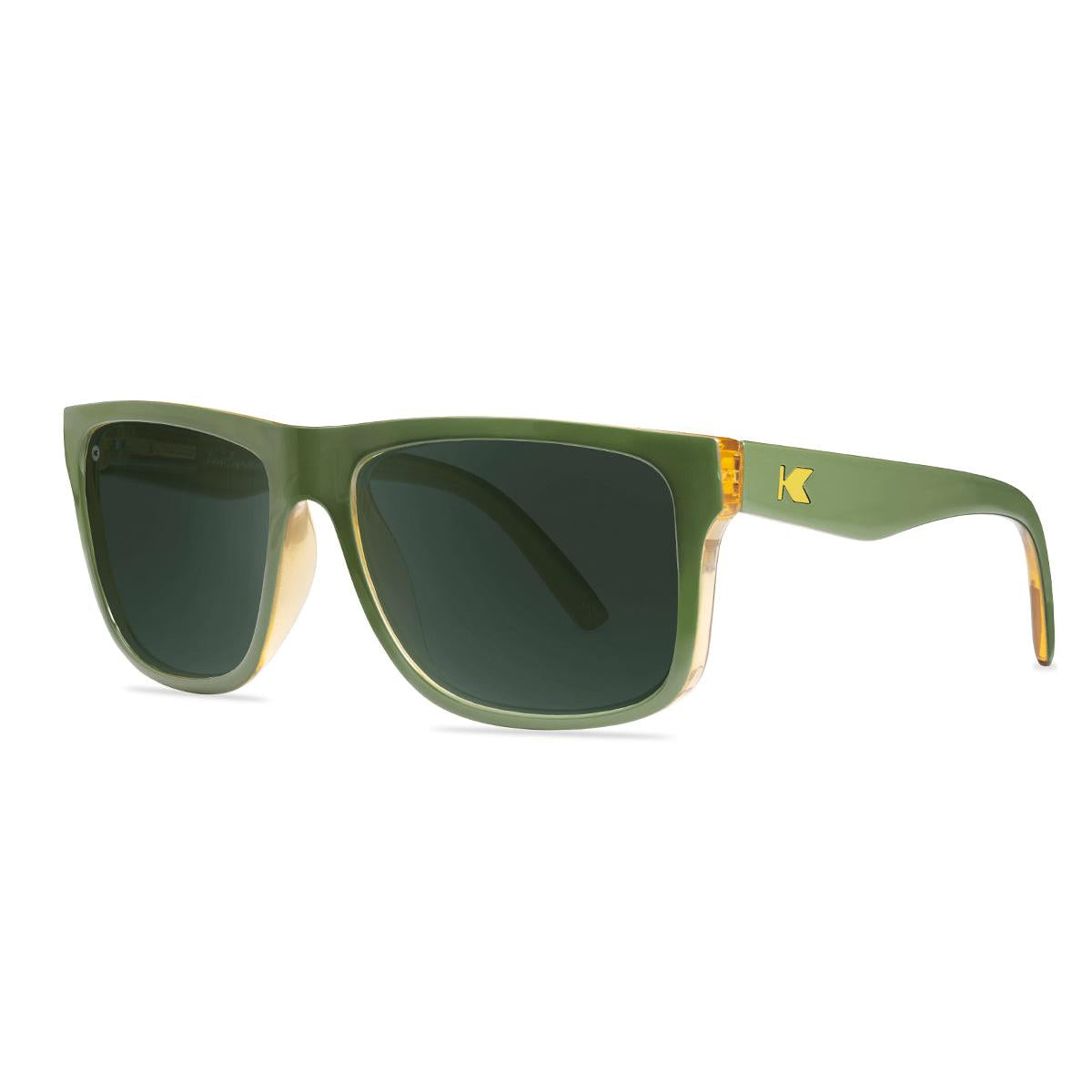 When duty or nature requires your presence, it’s time to pop on your Coyote Calls Torrey Pines sunglasses. The glossy army green exterior may fool some into brushing them off as a basic pair, but the amber interiors invite curious parties to consider alternate theories. Olive ‘K’ detailing complements those transparent accents easily, while polarized aviator green lenses offer solid UV400 protection and impact resistance to boot. Not every pair of polarized shades can look this good, so make sure you show them off accordingly.