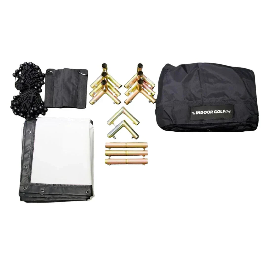 This DIY kit comes with everything included in the SIG Enclosures with the exception of the pipe frame - which will need to be purchased separately at a local hardware store. The kit includes the SIGPRO Premium Screen, black surround, 1" EMT canopy fittings (connectors), foam padding, and 6" ball bungees.