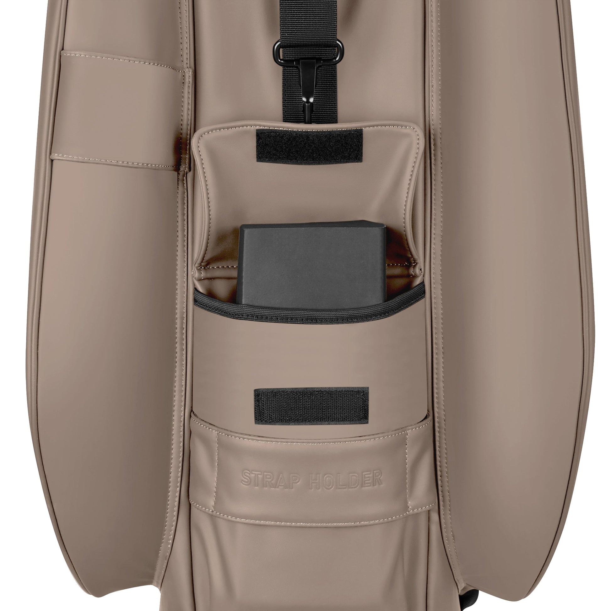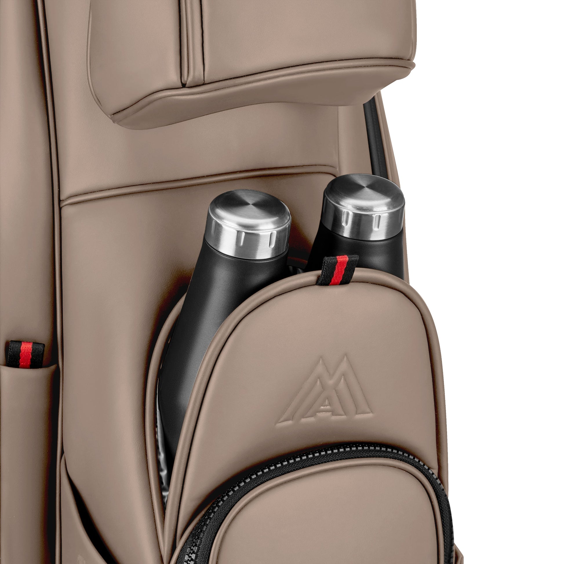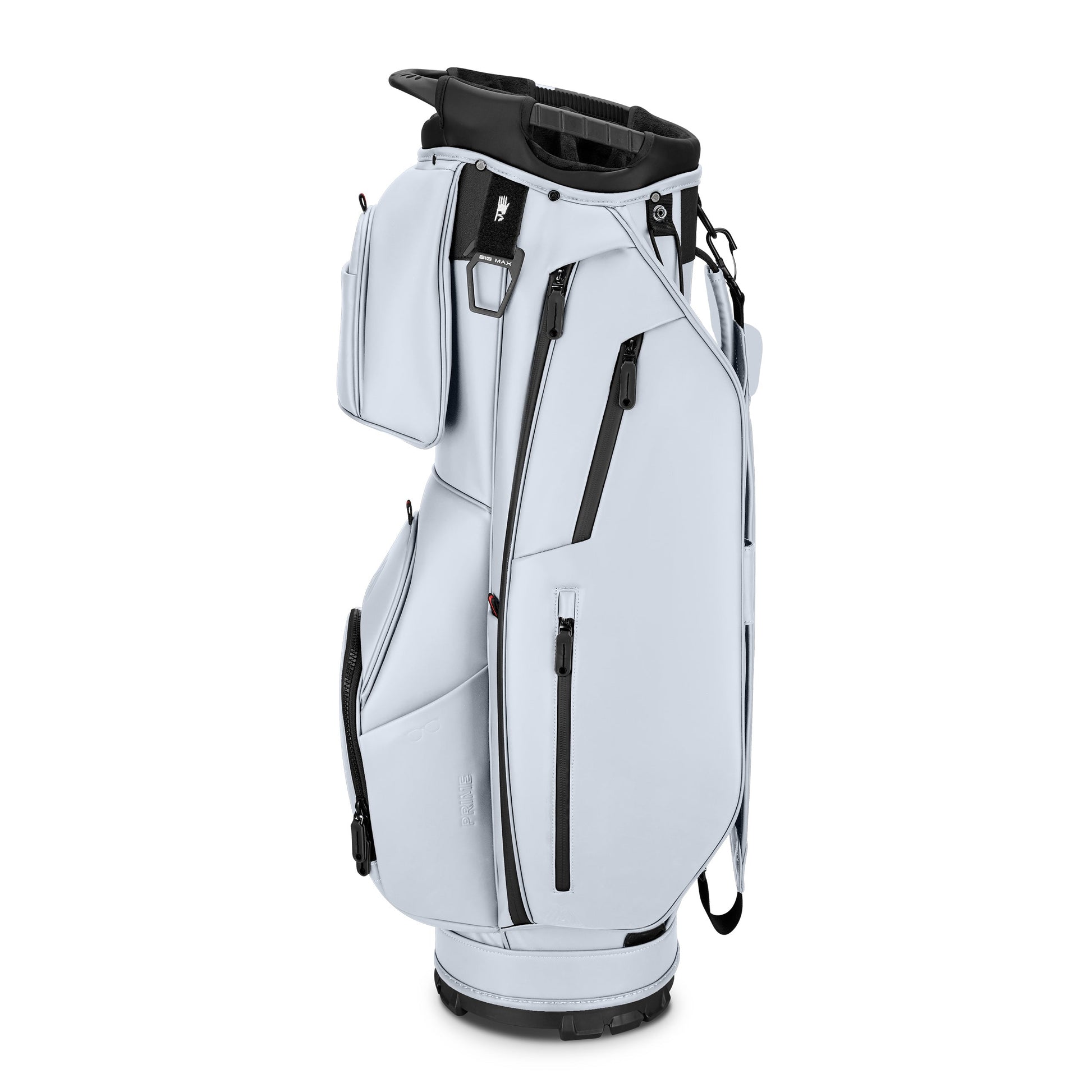 Introducing the Dri Lite Prime Cart Bag: a fusion of innovation and refinement. With magnetic pockets, your essentials are effortlessly at hand. Crafted from exquisite vegan leather, it offers the discerning golfer a unique premium feel with uncompromising style. A 14-way soft top divider safeguards your clubs, while waterproof value pockets protect you from the elements. The Dri Lite Prime, is a statement of sophisticated performance.