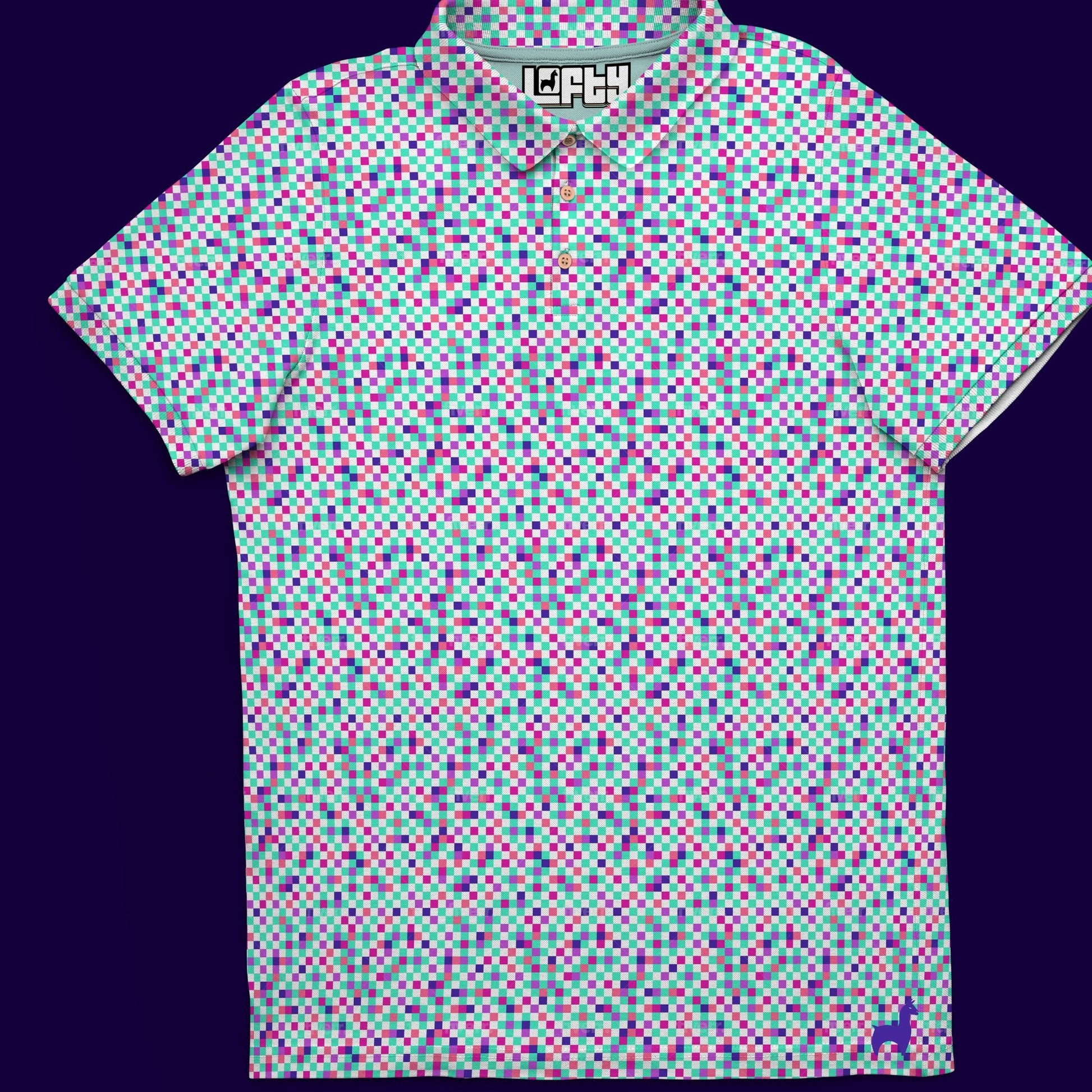 DUSTIN | Pastel Pixel Pattern Golf Polo Shirt for Men (ATHLETIC FIT)