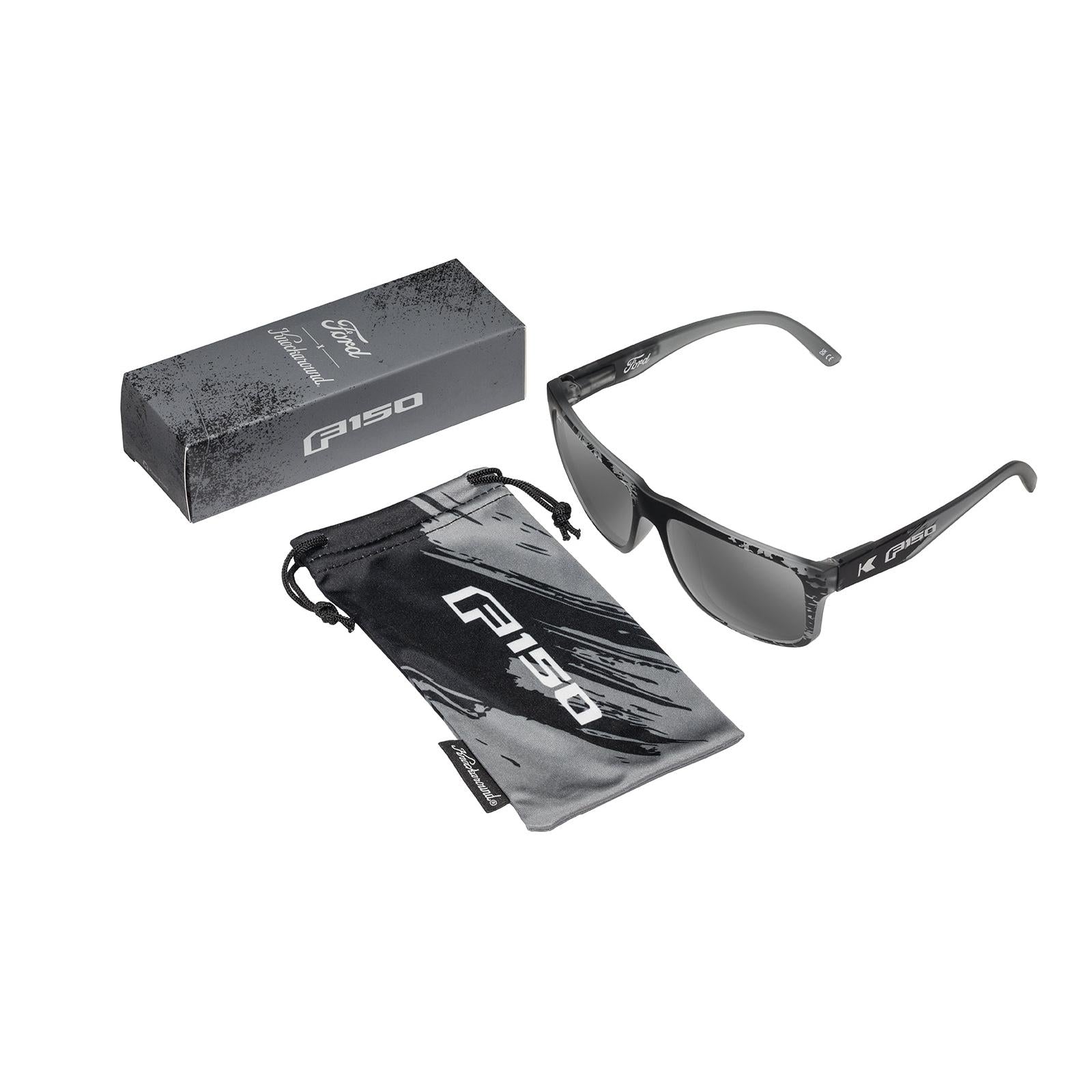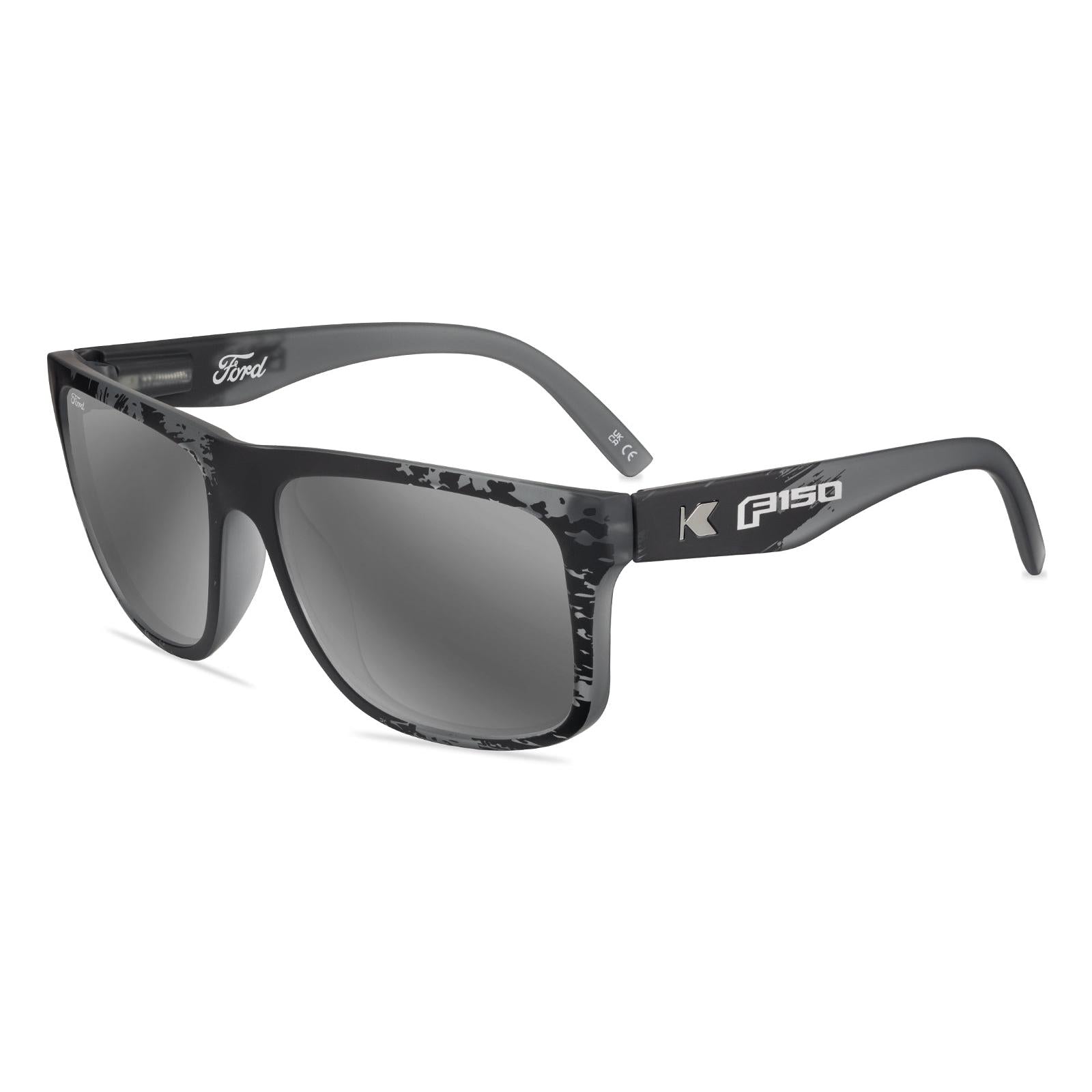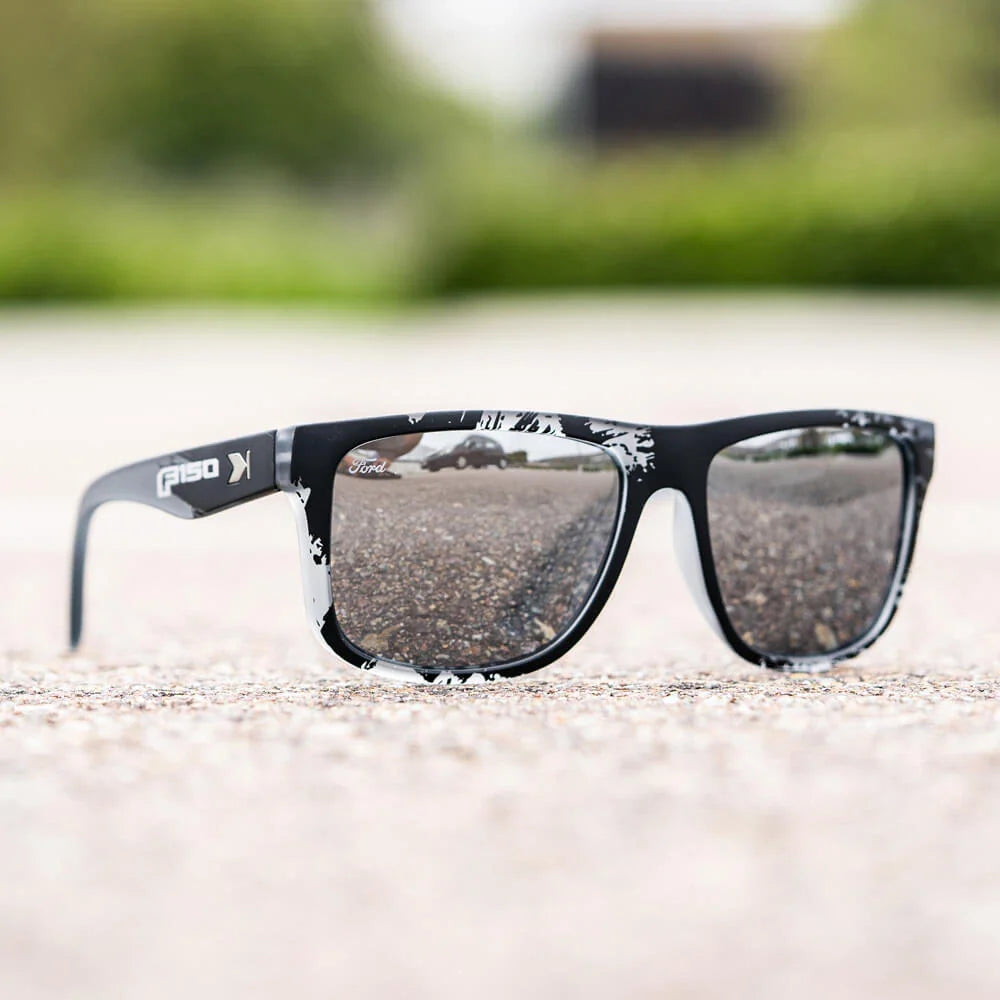 Ford F-150 Torrey Pines are designed and built for the bold and the brave. These frames sport a semi-transparent gray base with a unique black "off-road" splatter pattern, mirroring the ruggedness of the F-150. Ideal for large faces, the frosted finish adds a sleek, modern touch. Adorned with the distinctive F-150 logo on the arms and the iconic Ford logo inside, these sunglasses feature Silver Smoke lenses, ensuring you're ready for any adventure, just like America's beloved truck.