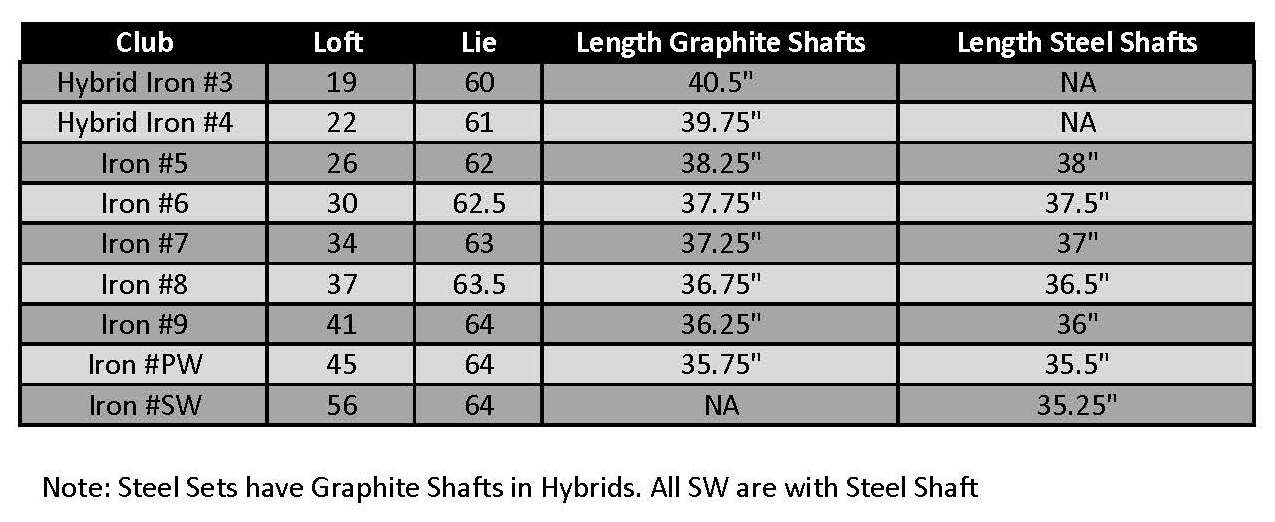 - Shafts 1” longer than our standard irons with similar loft resulting in more club head speed and longer distance off the tee, off the fairway and out of the rough.