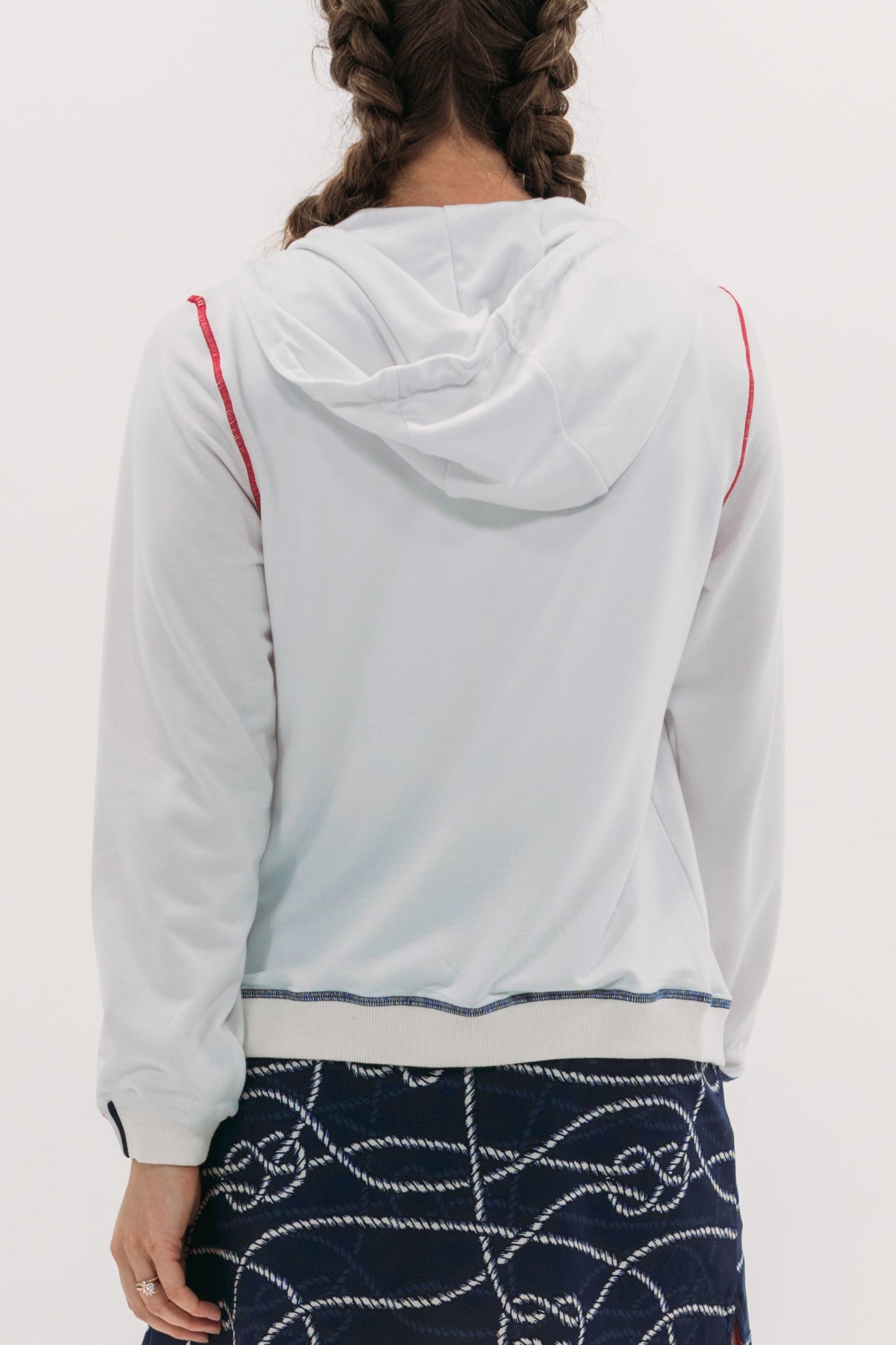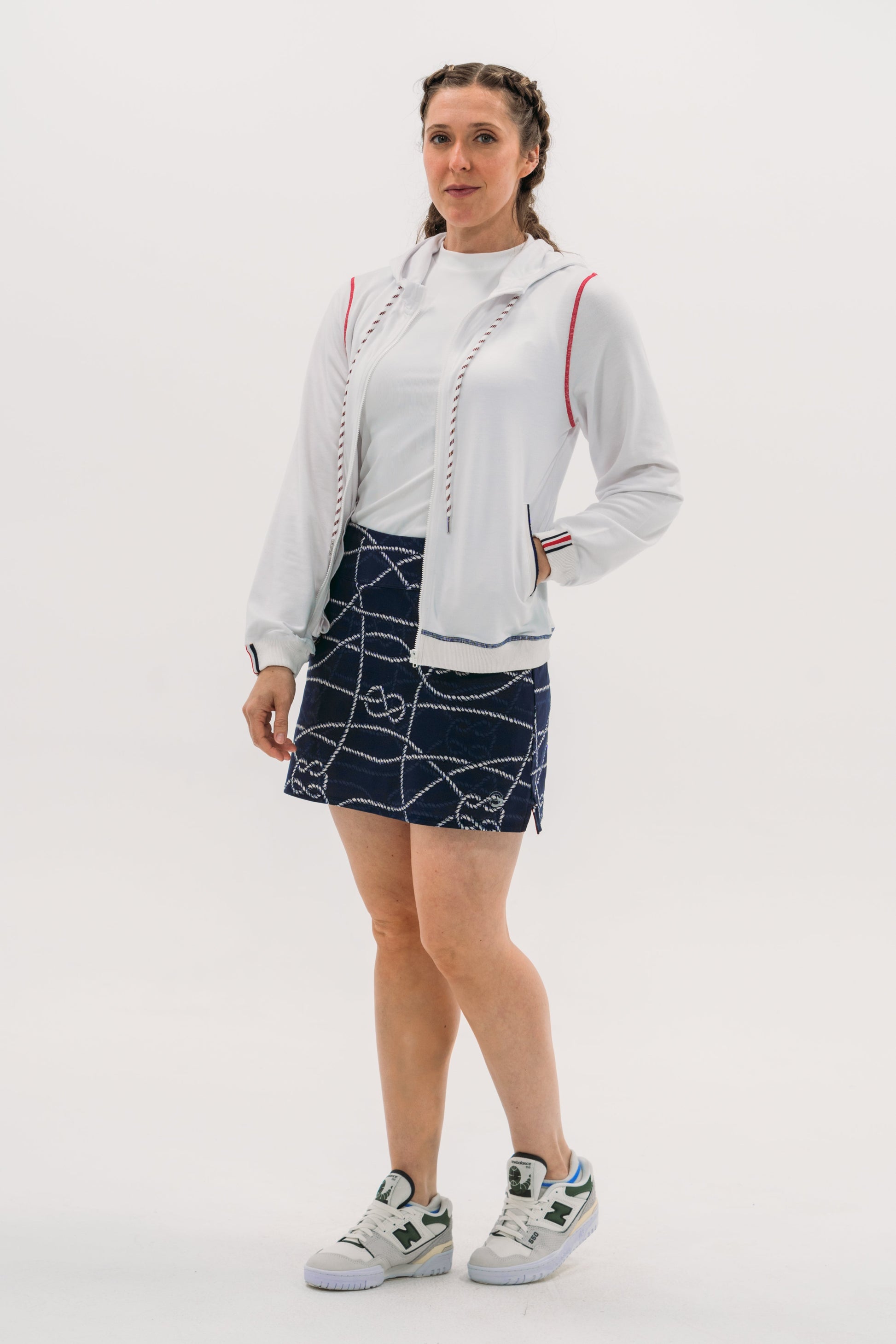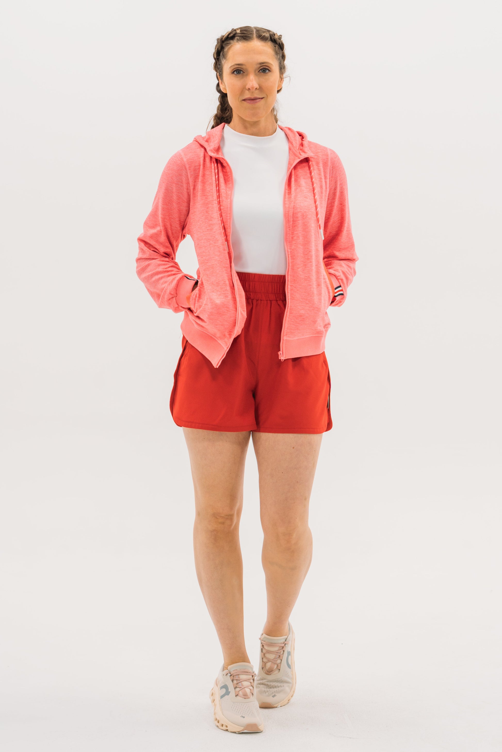 Cut for a relaxed fit from ULTRA-LIGHTWEIGHT loop-back French terry, this full-zip pullover hoodie will be your go-to cozy piece for the season. Contrast stitching and striped drawstrings elevate this piece beyond a beautifully made basic.