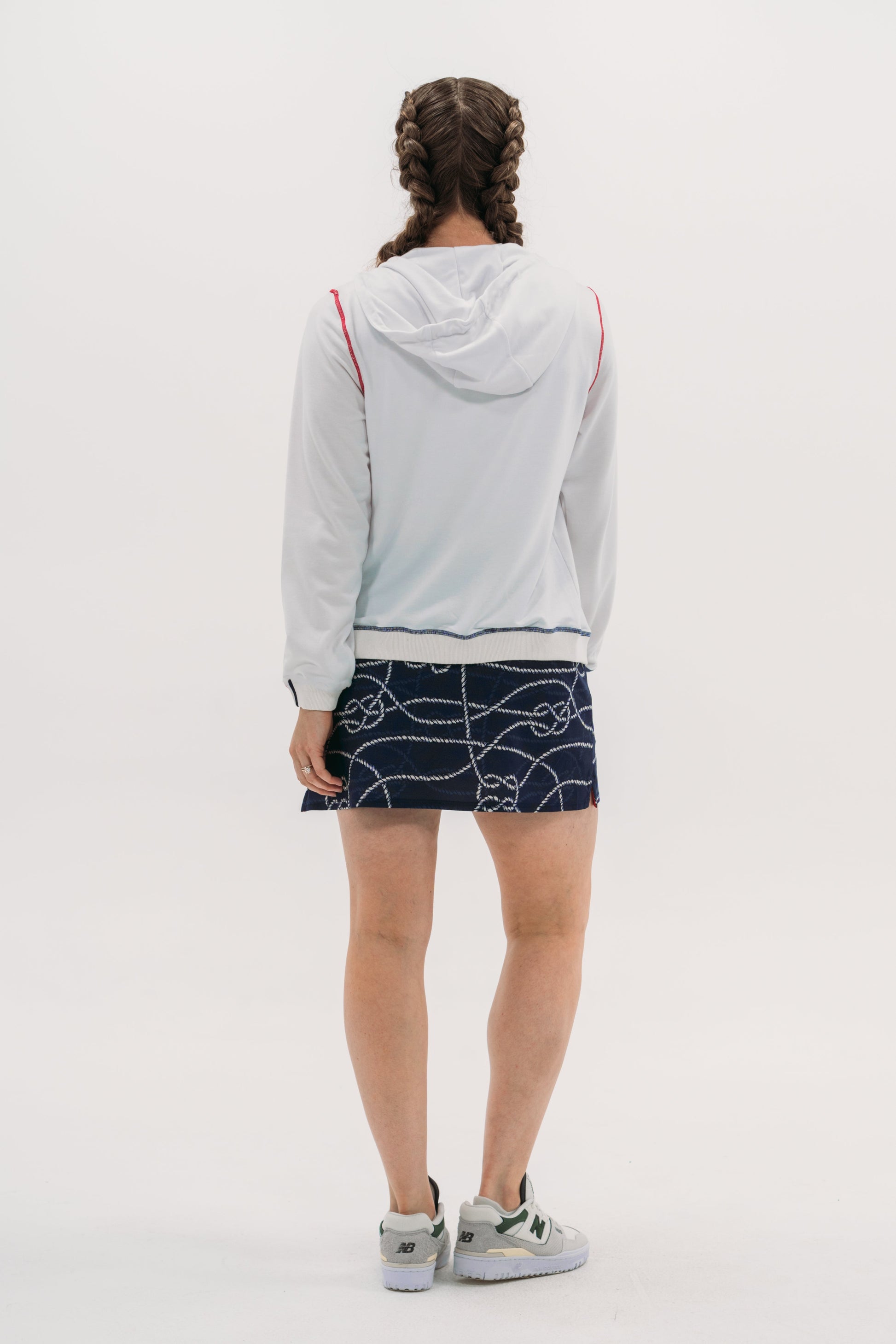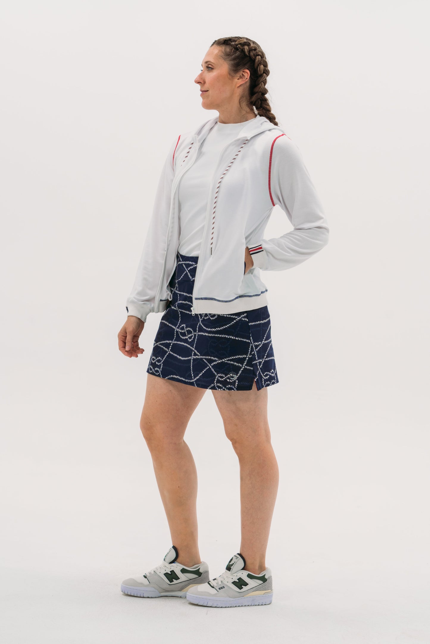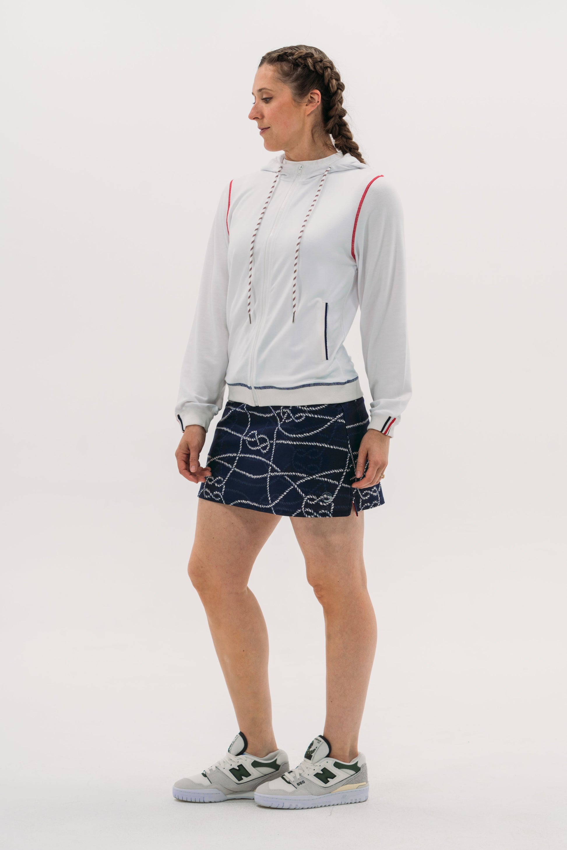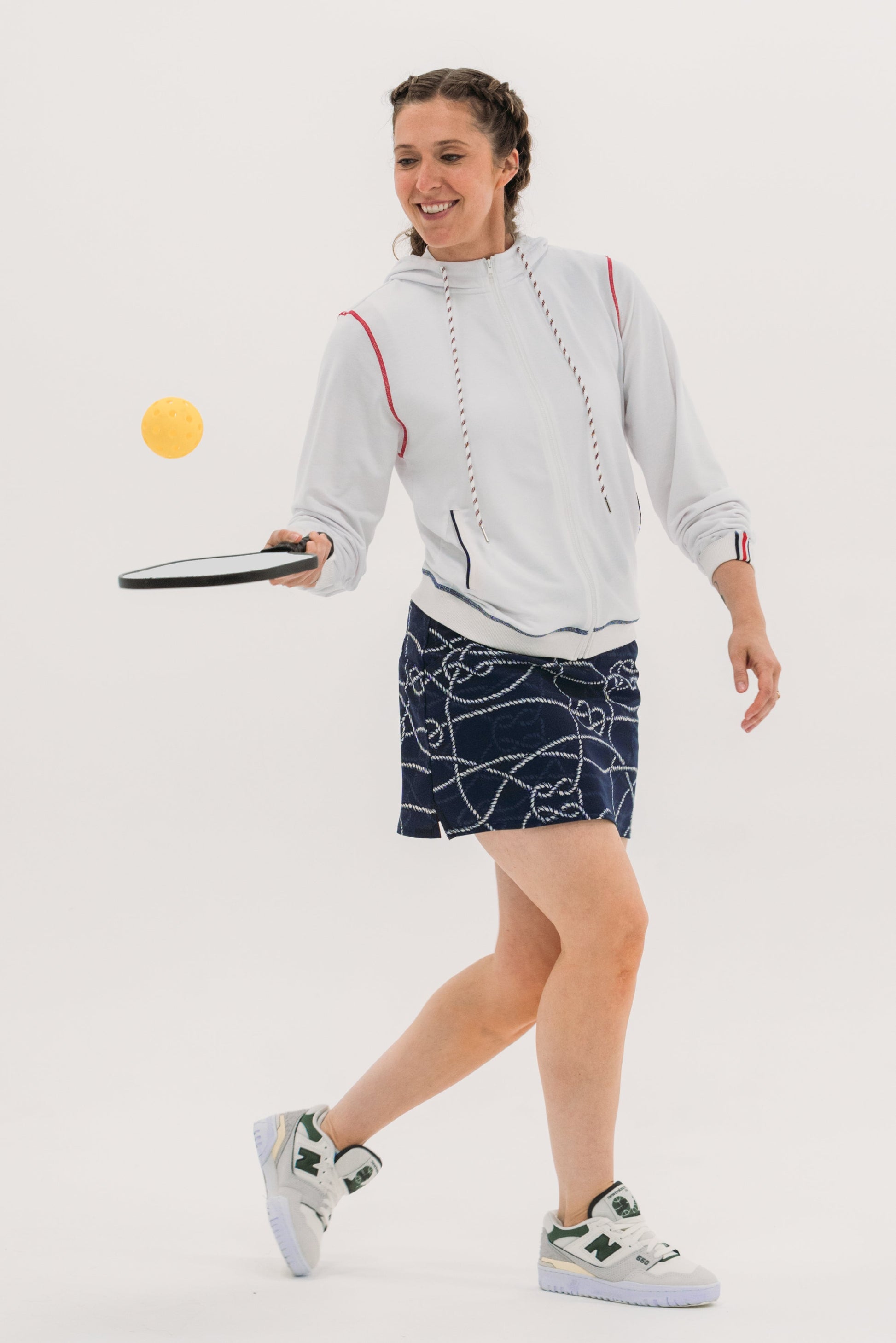 Cut for a relaxed fit from ULTRA-LIGHTWEIGHT loop-back French terry, this full-zip pullover hoodie will be your go-to cozy piece for the season. Contrast stitching and striped drawstrings elevate this piece beyond a beautifully made basic.