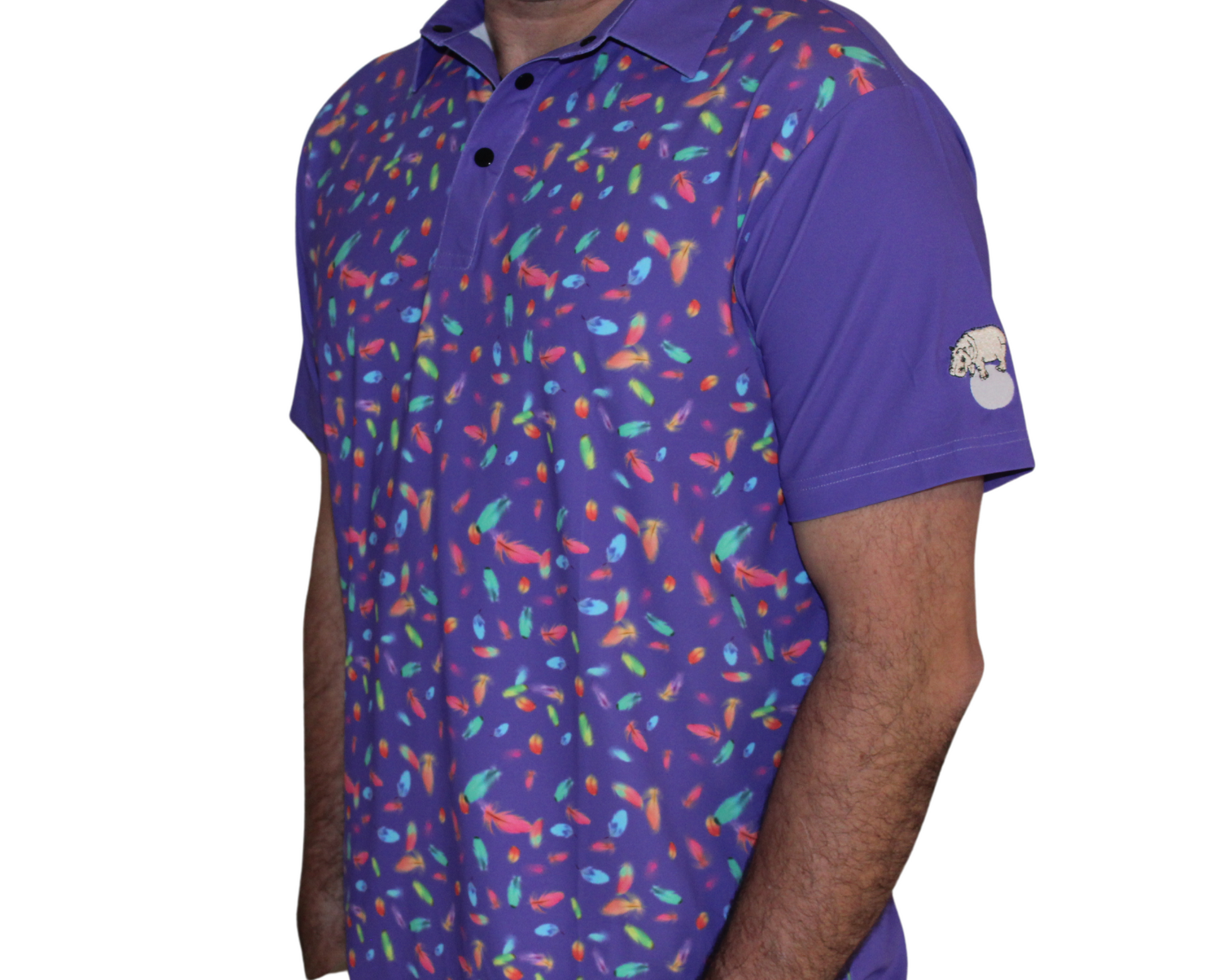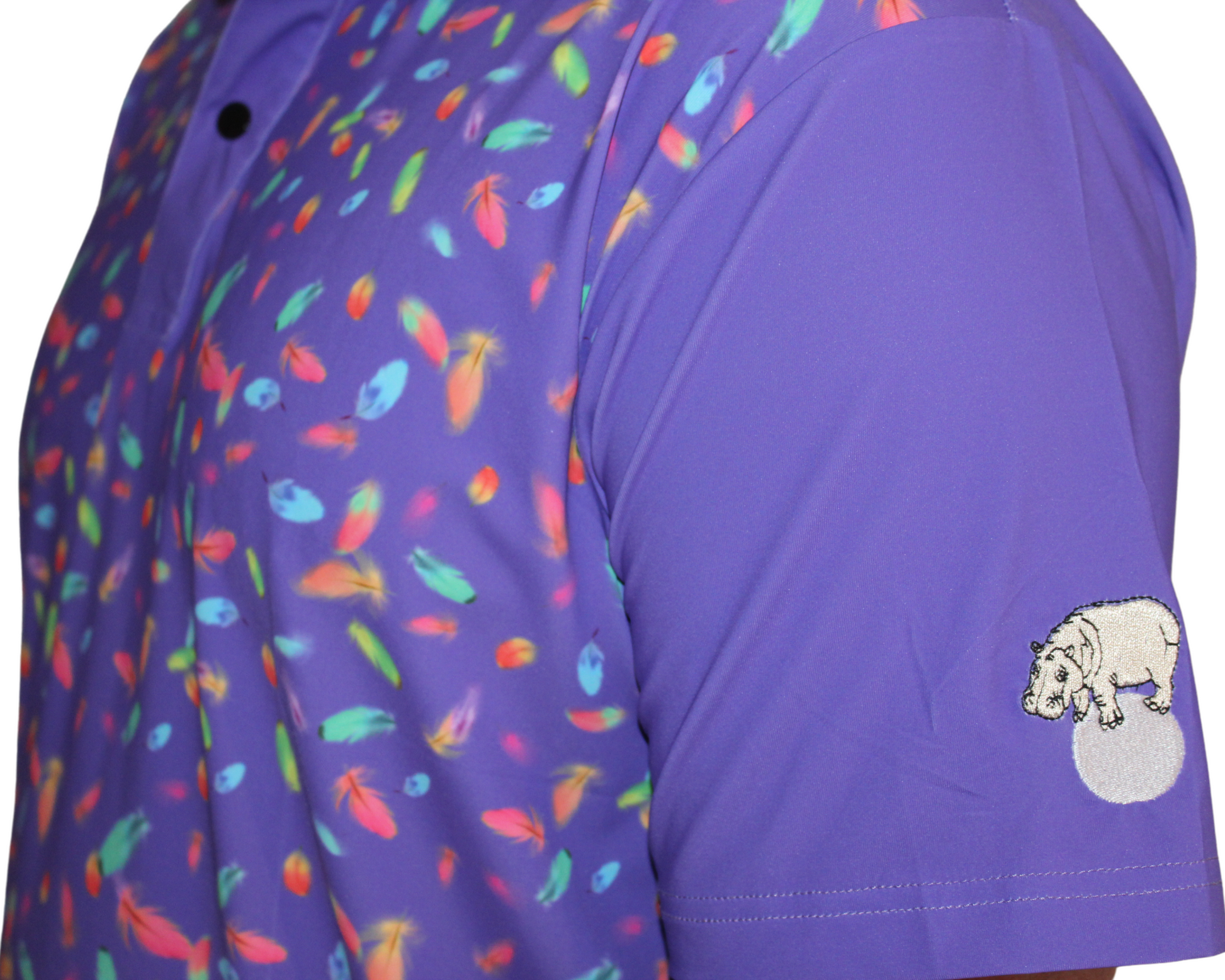 This golf shirt is a special collection, collaboration with GDLF (Golfdoglovesfamily - TikTok)! One sleeve has our Chippopotamus logo attached, and other sleeve has his GDLF logo!