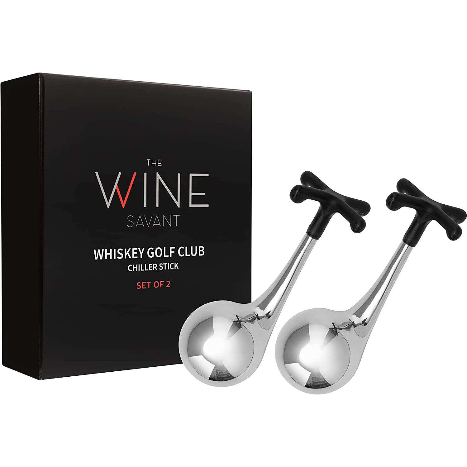 Golf Stick Shaped Stainless Steel Whiskey Stones, Whiskey Rocks, Great for Entertaining Guests, 2 Stones Rocks Cubes for Whiskey, Bourbon Vodka, Scotch, Metal Chillers Golf Gifts for Dad