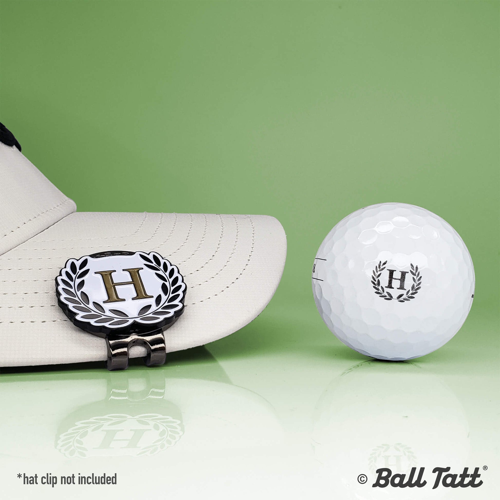 Make your mark with the Ball Tatt Monogram Golf Ball Stamp, featuring a striking "H" framed by a classic wreath. Crafted from durable die-struck metal with a textured enamel coating, this bold sized (33mm x 27.6mm x 2mm) debossed design combines lasting quality with style. Designed to fit magnetic hat clips and pairs perfectly with your ball stamper for a cohesive look. Personalize your game and showcase your unique identity with this essential golf accessory.