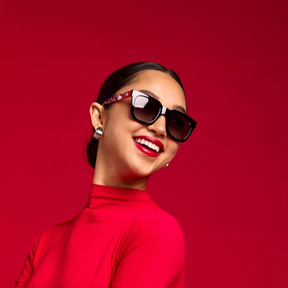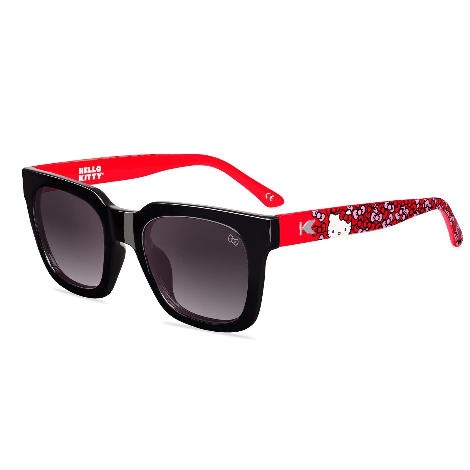 Make a bold statement with the Hello Kitty Songbirds. Featuring a black front frame and red temples decorated with Hello Kitty's iconic bow pattern, the oversized square silhouette adds playful sophistication to any look.