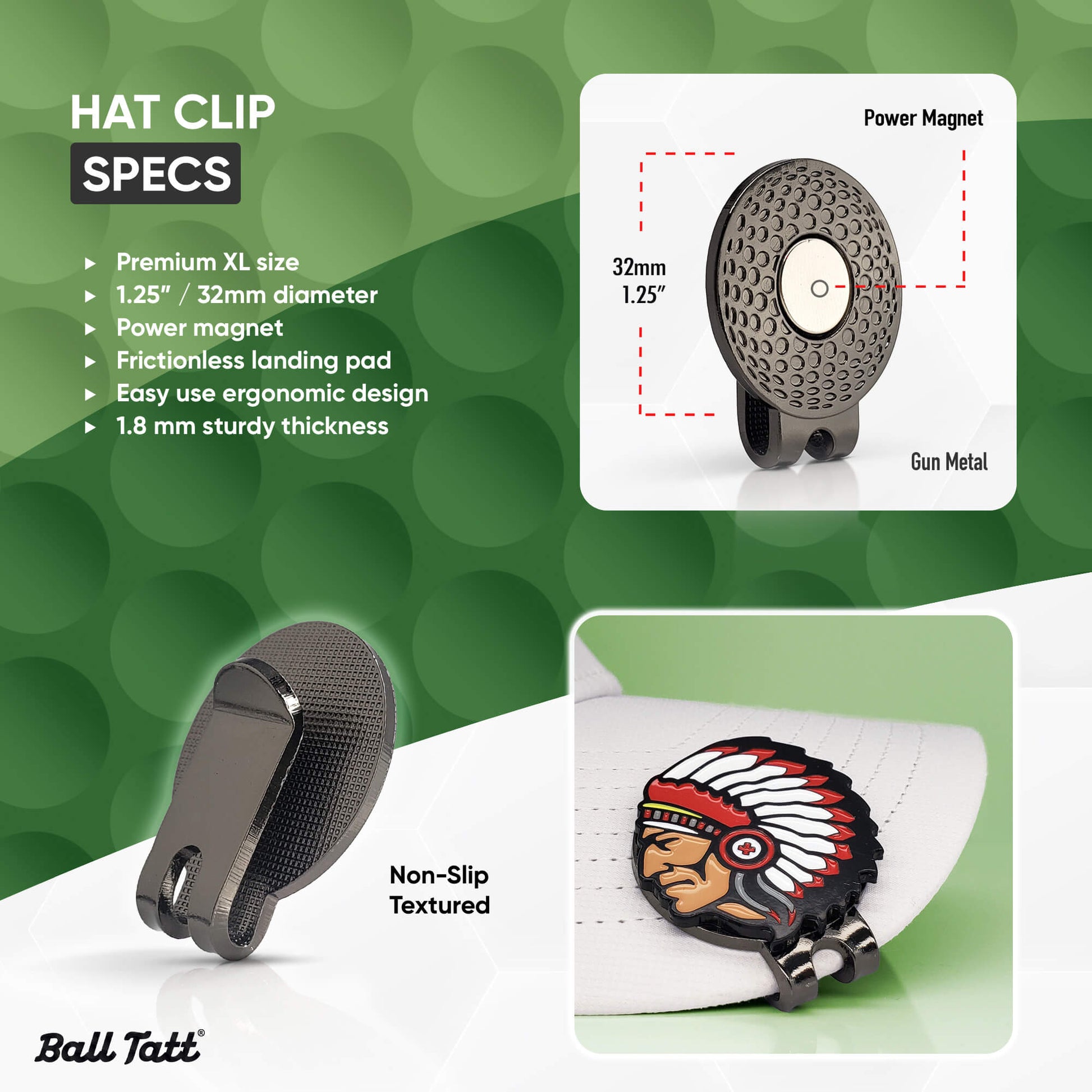 - 1.25" DIAMETER HAT CLIP: Power magnetic with larger landing pad designed for easy snap on and removal of custom sized ball markers - gun metal nickel.