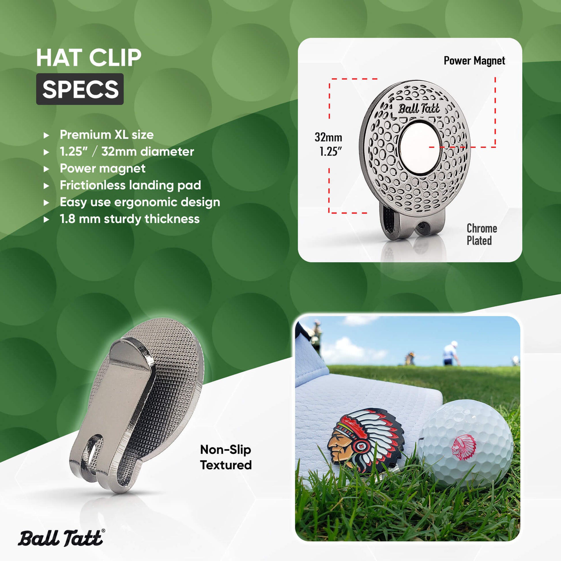 - 1.25" DIAMETER HAT CLIP: Power magnetic with larger landing pad designed for easy snap on and removal of custom sized ball markers - chrome plated.