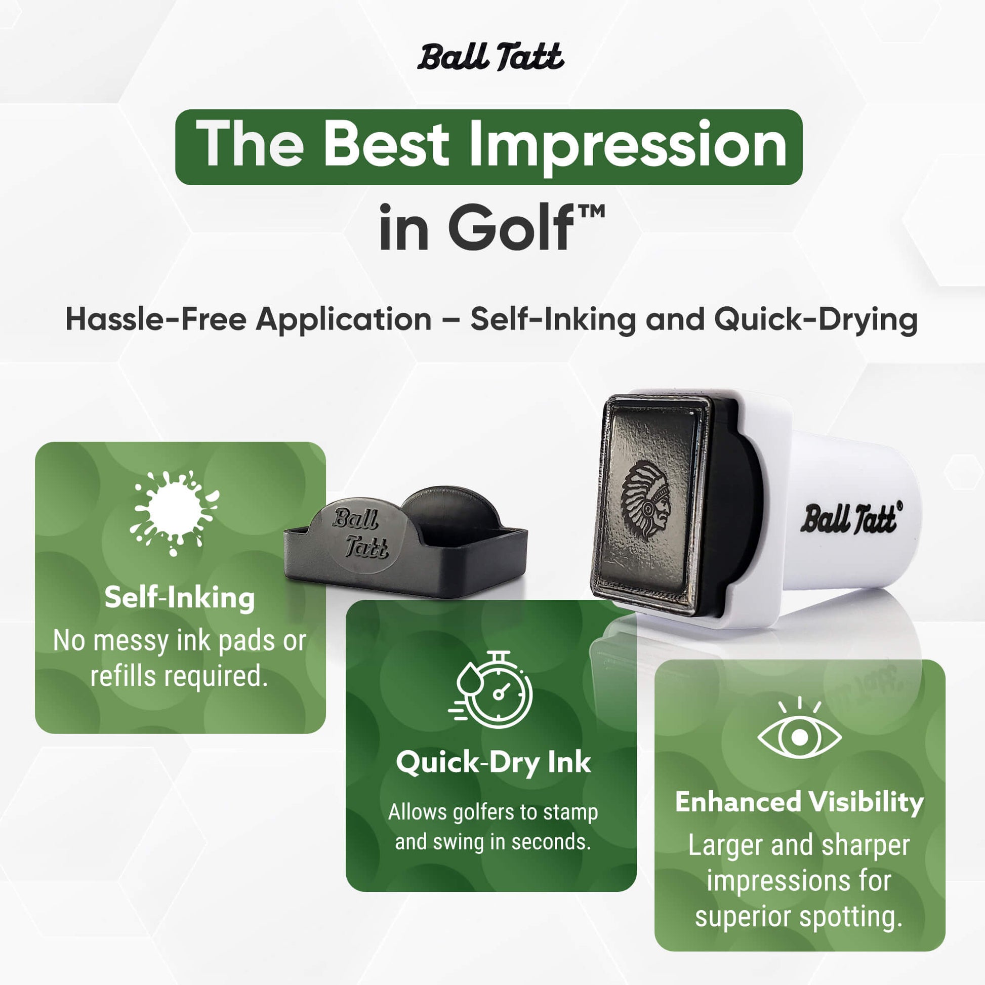 - QUICK-DRYING PERMANENT INK: Stamp golf balls & swing in seconds. Fast-drying, waterproof & fade resistant, our quick dry stamping ink is less prone to smudging & fading so that ball stamps stay put.