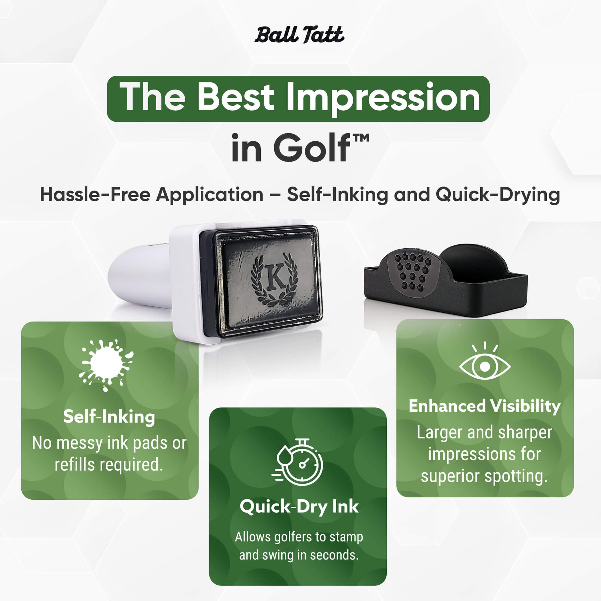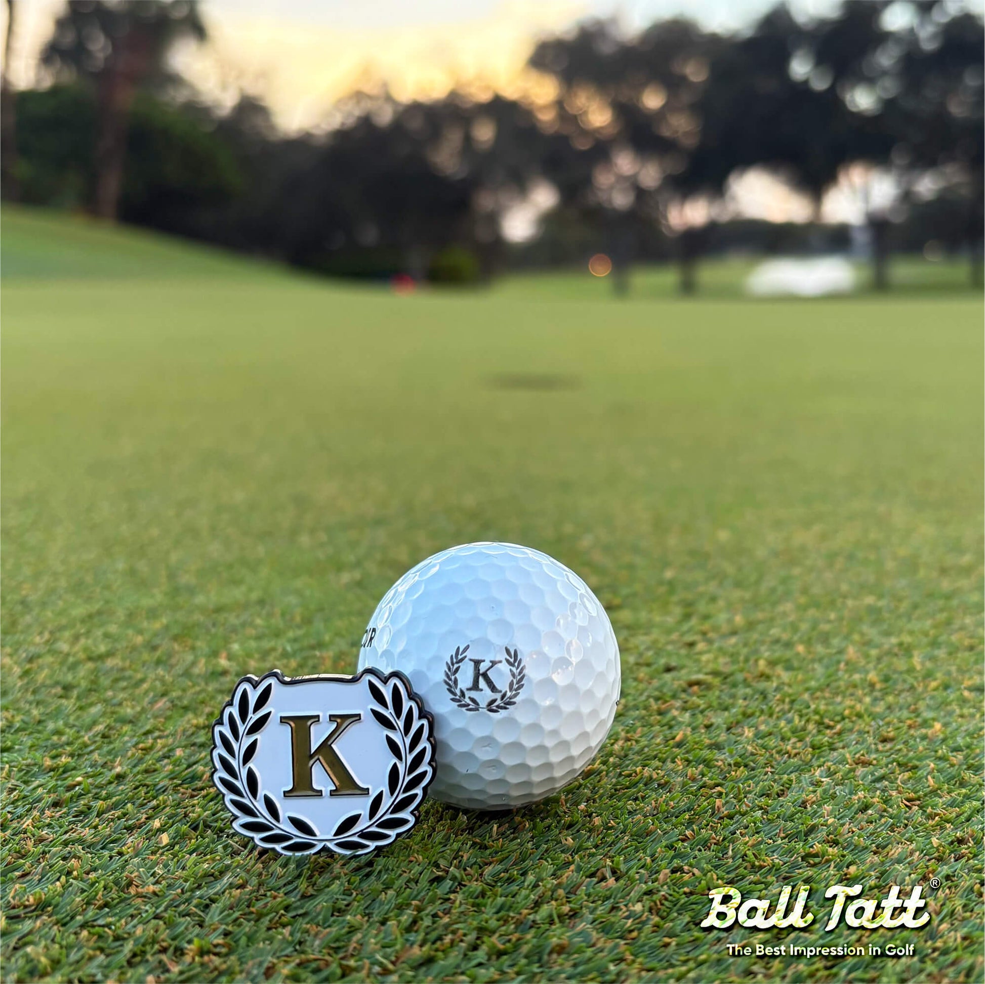 Add style and a personal touch to your game with our monogram-style Ball Tatt stamper. Featuring your “K” initial elegantly encircled by a classic wreath, this stamper makes marking your golf balls effortless and distinctive.
