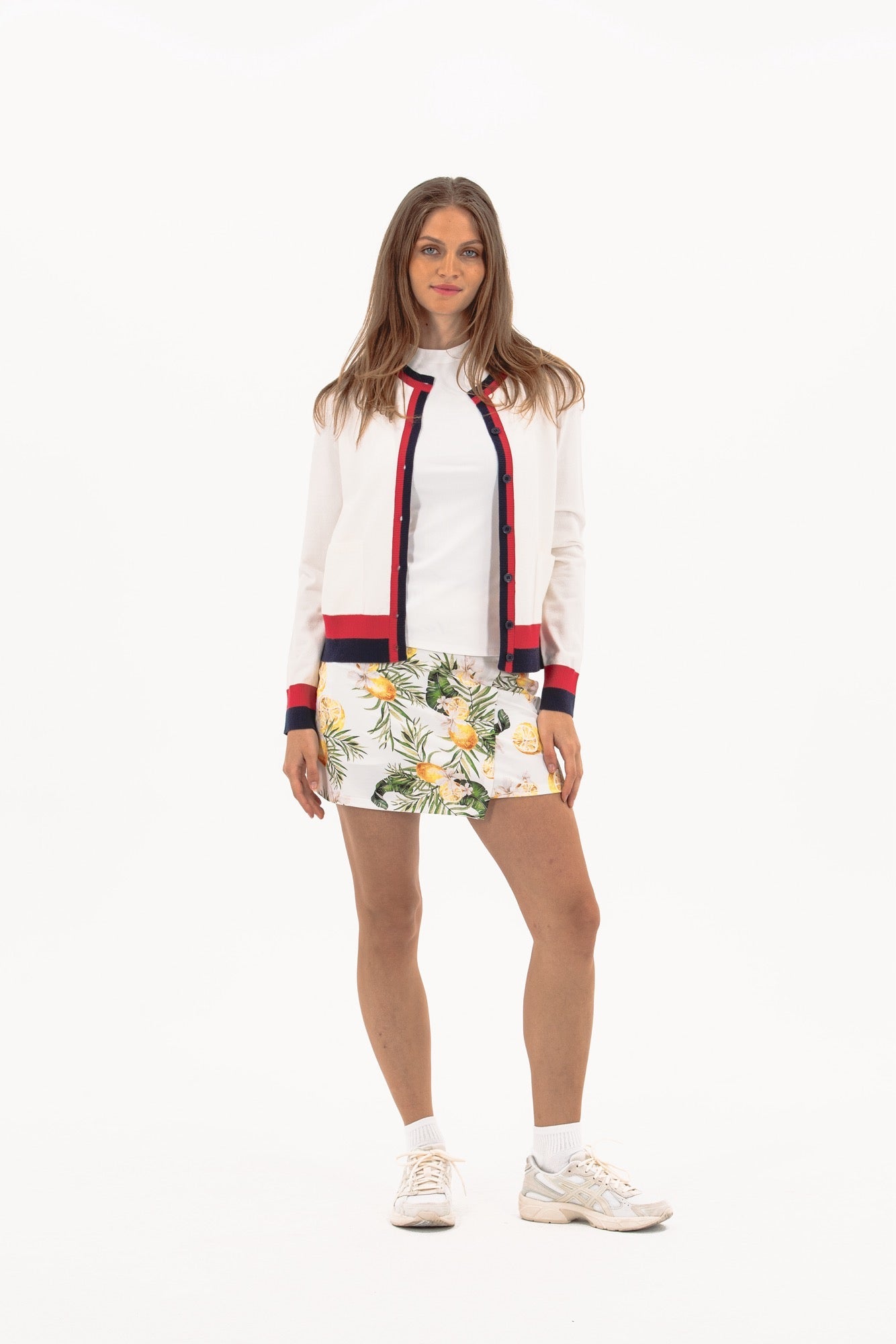 A crisp A-line silhouette meets a bold citrus print in this standout skirt. Tailored yet playful, it channels Sicilian summers with a modern, clean-lined finish.