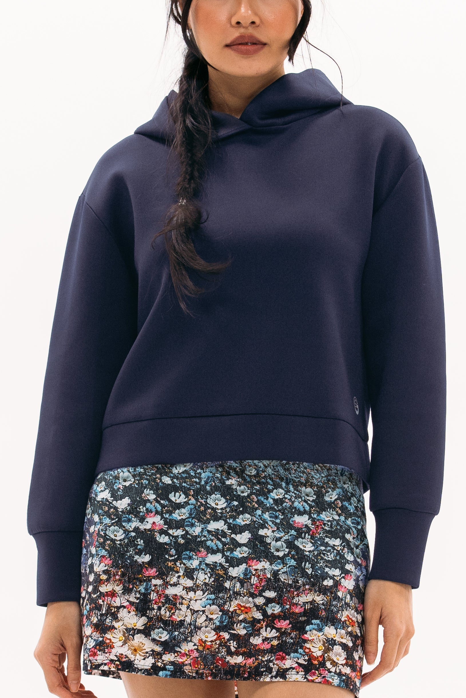 Design a hoodie, but make it fancy. With elevated details like a grosgrain ribbon trimmed hood, this high-end drop shoulder scuba hoodie is the perfect layer that is polished enough for wear on-and-off course. Made from comfortable lightweight, breathable stretch scuba neoprene that helps regulate body temperature.