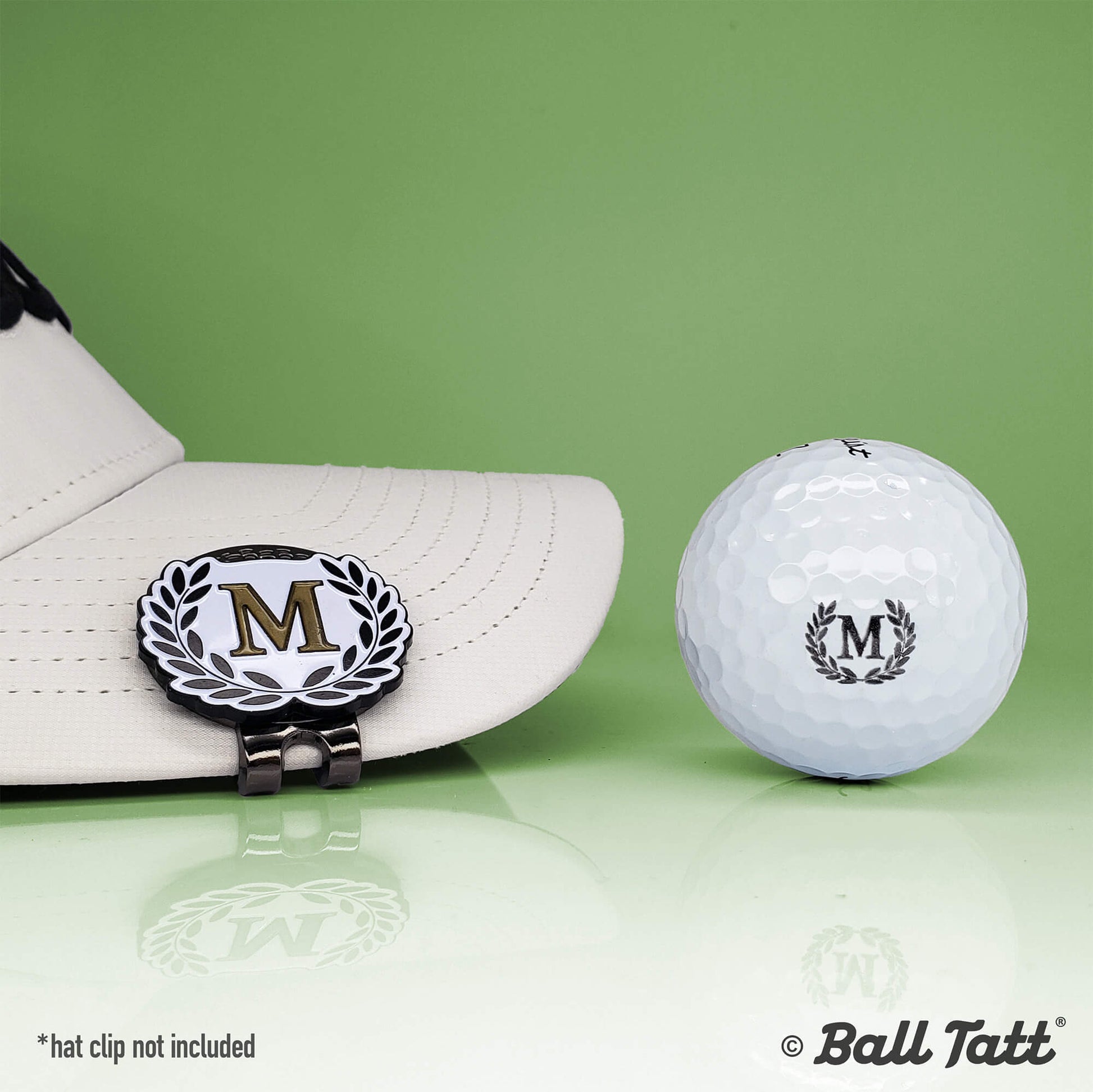 Make your mark with the Ball Tatt Monogram Golf Ball Stamper, featuring a striking "M" framed by a classic wreath. Crafted from durable die-struck metal with a textured enamel coating, this bold sized (33mm x 27.6mm x 2mm) debossed design combines lasting quality with style. Designed to fit magnetic hat clips and pairs perfectly with your ball stamper for a cohesive look. Personalize your game and showcase your unique identity with this essential golf accessory.