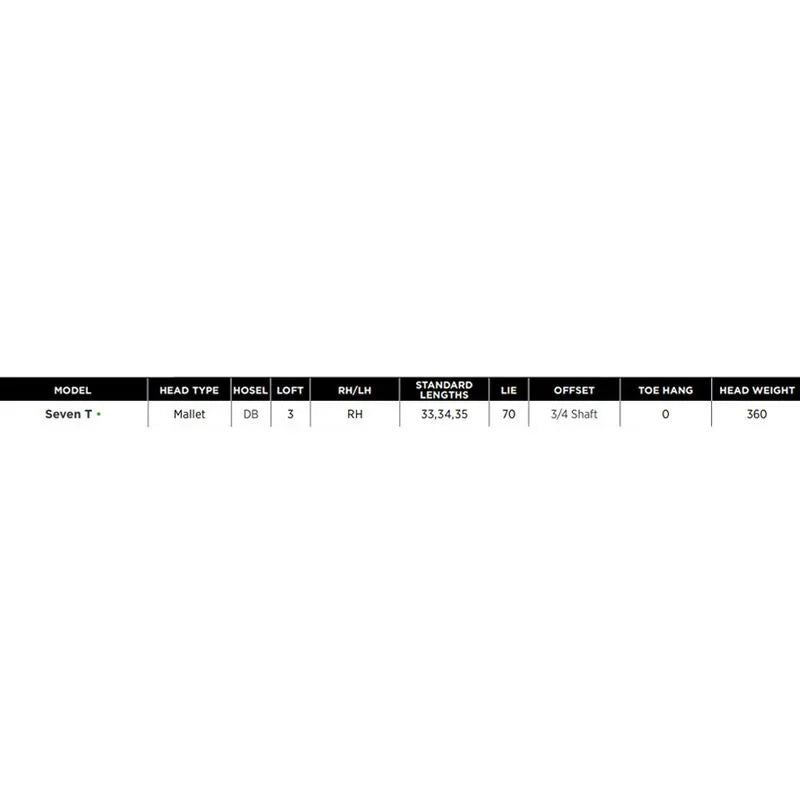 The Odyssey Ai-ONE Milled Seven T DB Putter is a high-performance golf club designed to enhance putting accuracy and consistency. It features a Double Bend shaft, promoting a face-balanced setup ideal for strokes with minimal arc and face rotation.