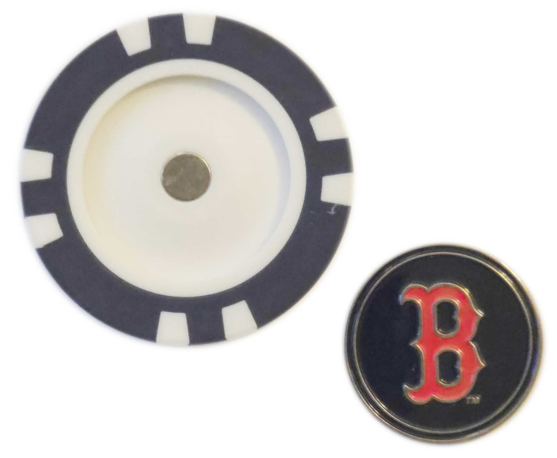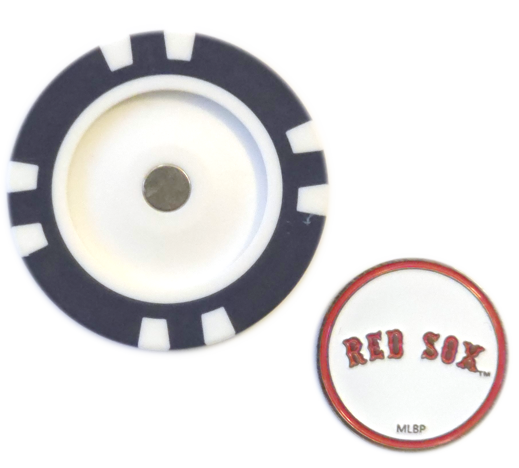 - Use the poker chip or metal marker to mark your ball on the green, with the classic Red Sox “B” logo.