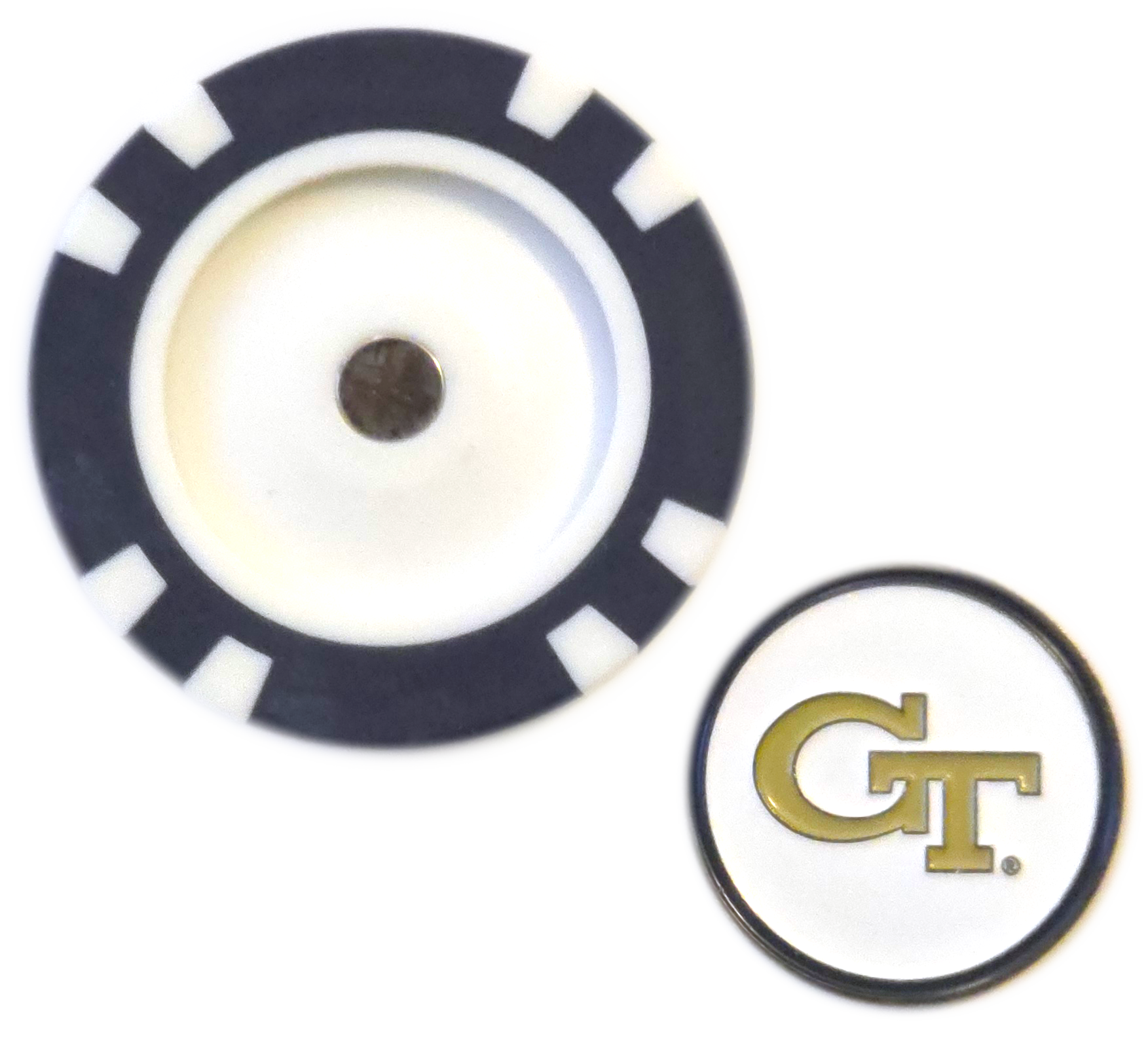 Celebrate the Yellow Jackets with this officially licensed Georgia Tech Poker Chip Ball Marker. The poker chip includes a removable, double-sided magnetic metal marker, making it easy to mark your ball. With Georgia Tech’s iconic navy and gold colors and the Yellow Jacket logo, this marker is a must for any Tech fan’s golf bag.