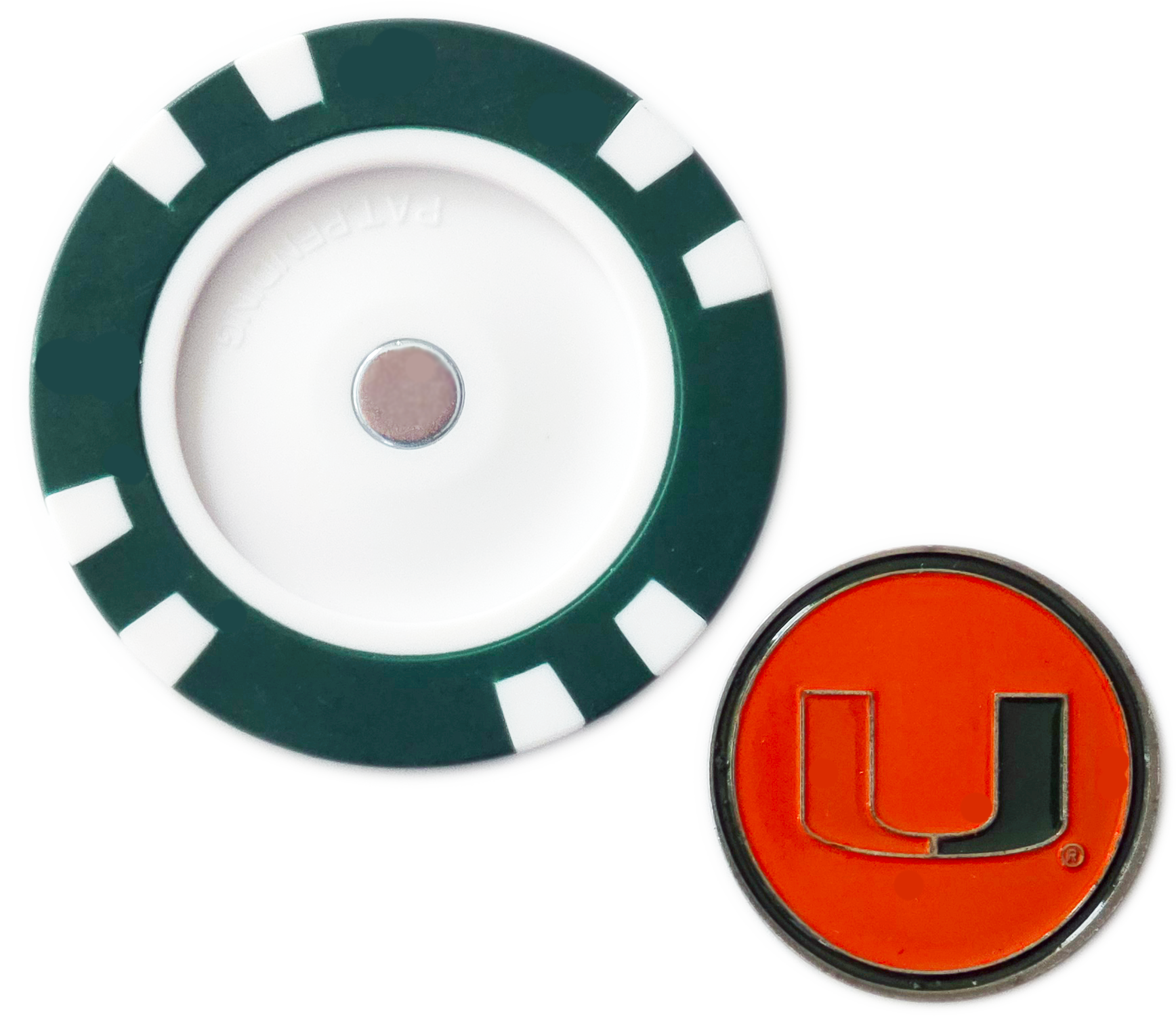 Bring the swagger of The U to every putt with this officially licensed Miami Hurricanes Poker Chip Ball Marker. Whether you’re a proud alum, loyal fan, or just love shouting “Go Canes!” whenever you can, this poker chip ball marker is the ultimate way to rep your Miami pride. The poker chip includes a removable, double-sided metal marker that magnetically snaps into place, so marking your ball is quick, easy, and stylish. With classic green, orange, and white colors and the iconic U logo, this marker lets you carry a piece of Coral Gables with you on every hole.