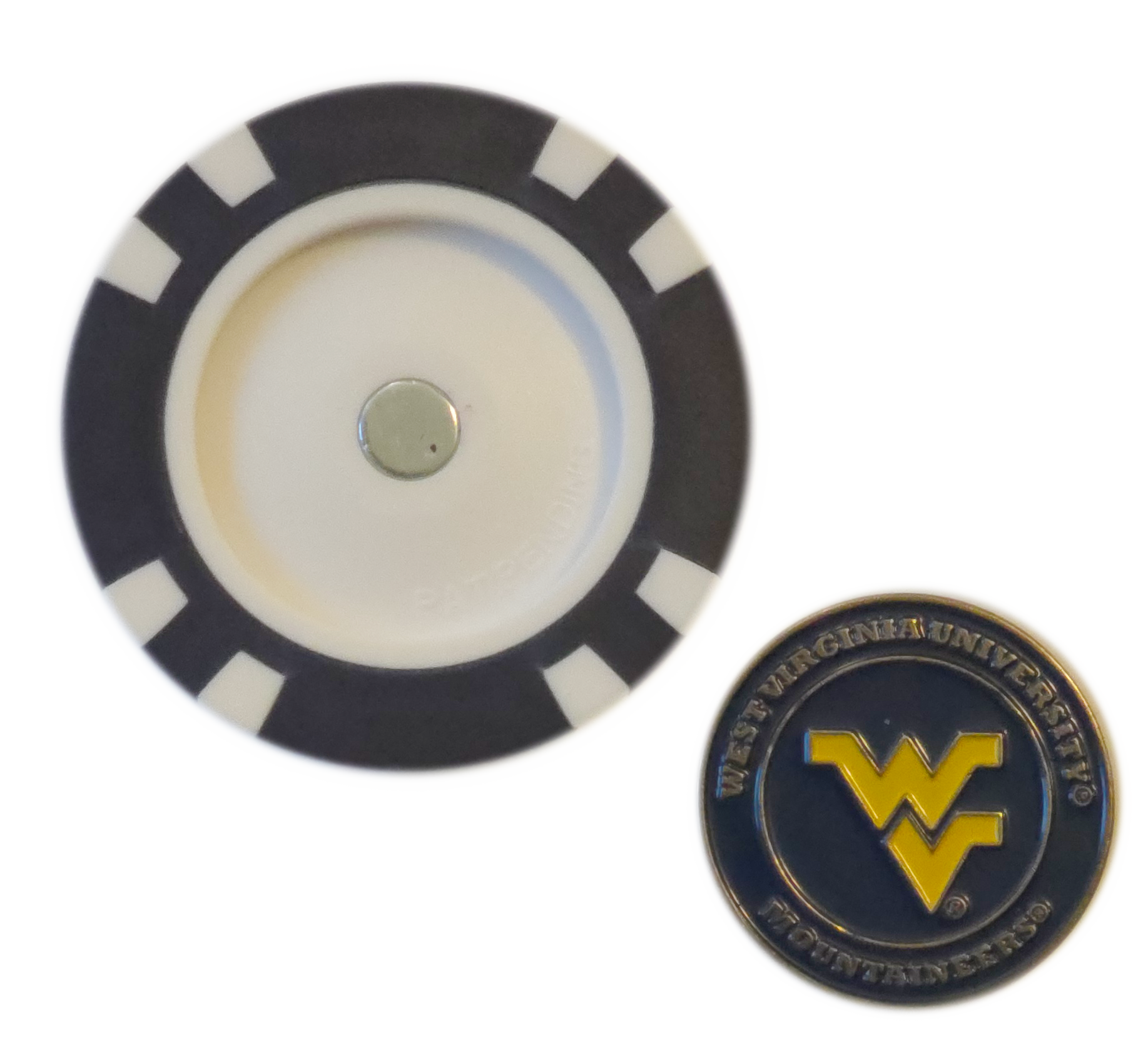 Carry the pride of West Virginia University on the green with this officially licensed Mountaineers Poker Chip Ball Marker. Featuring WVU’s signature blue and gold colors and the "Flying WV" logo, this marker includes a removable, magnetic metal marker for convenient ball marking. It’s a must-have for any loyal Mountaineer fan.