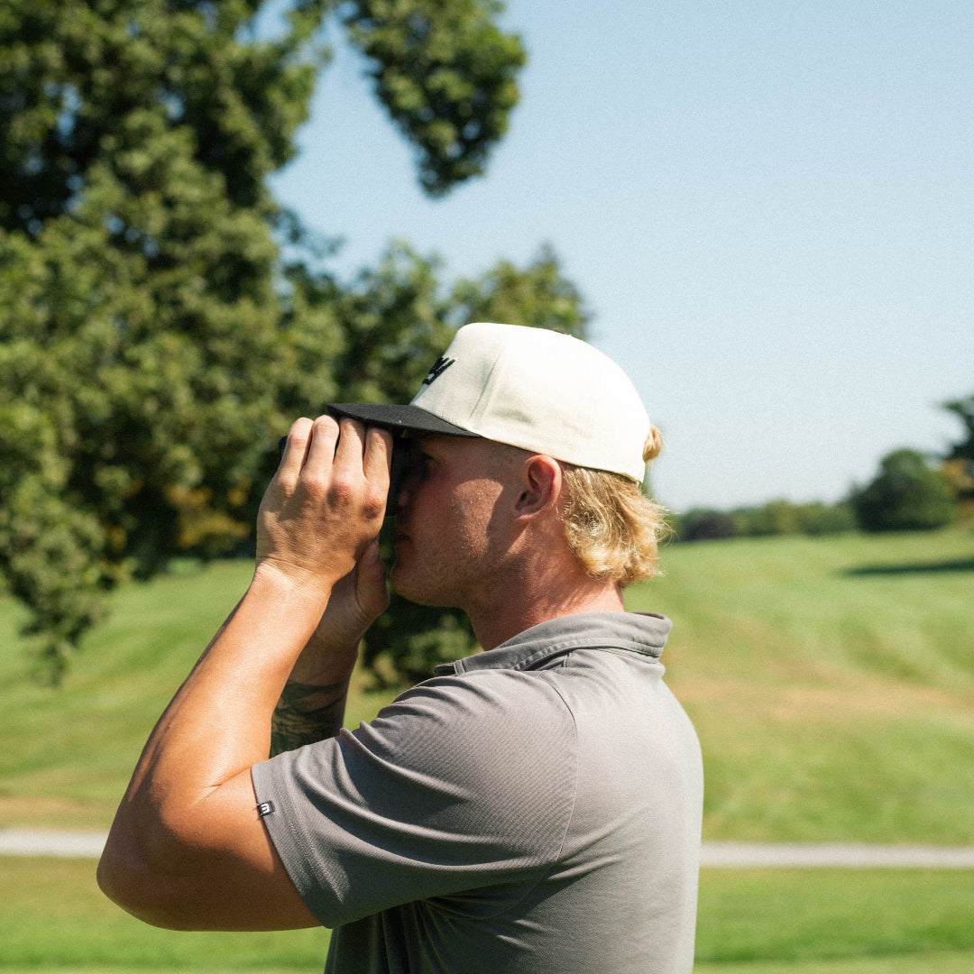 Elevate your style on and off the green with the “Portland” Bone & Black Snapback. Expertly crafted with premium cut-&‑sew construction and a structured 5-panel design, this hat offers a modern flat-brim profile.