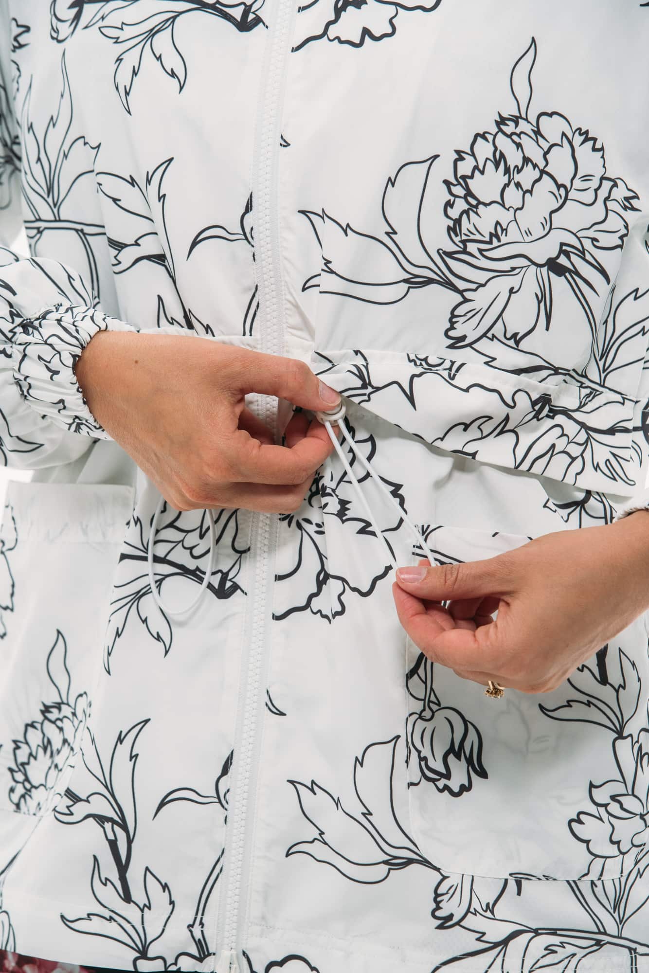 Lightweight enough to be packed away, this silhouette is both feminine and functional. Made from water-resistant nylon lined with breathable sport mesh, she’s cut in a long length to keep you protected from the elements. With adjustable waist toggles, packable hood, two way zip and dual front pockets, this essential piece keeps you covered rain or shine.