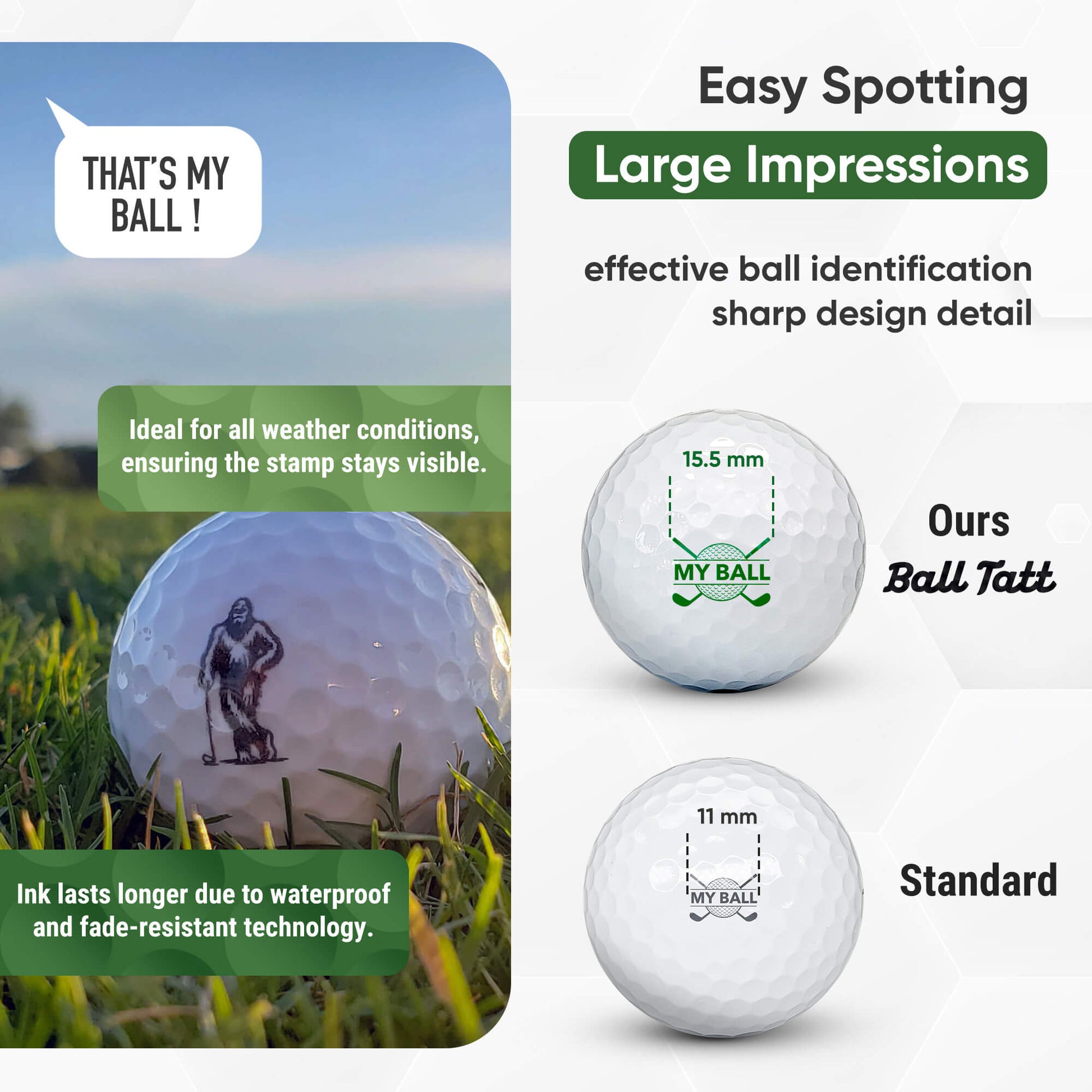 - BIGGER, WIDER, EASIER TO SPOT: Up to 50% larger & easier to recognize than most golf ball stamps! 0.75” x 0.5” golf ball stamper pad imprints BIG permanent impressions for fast & easy ball identification.