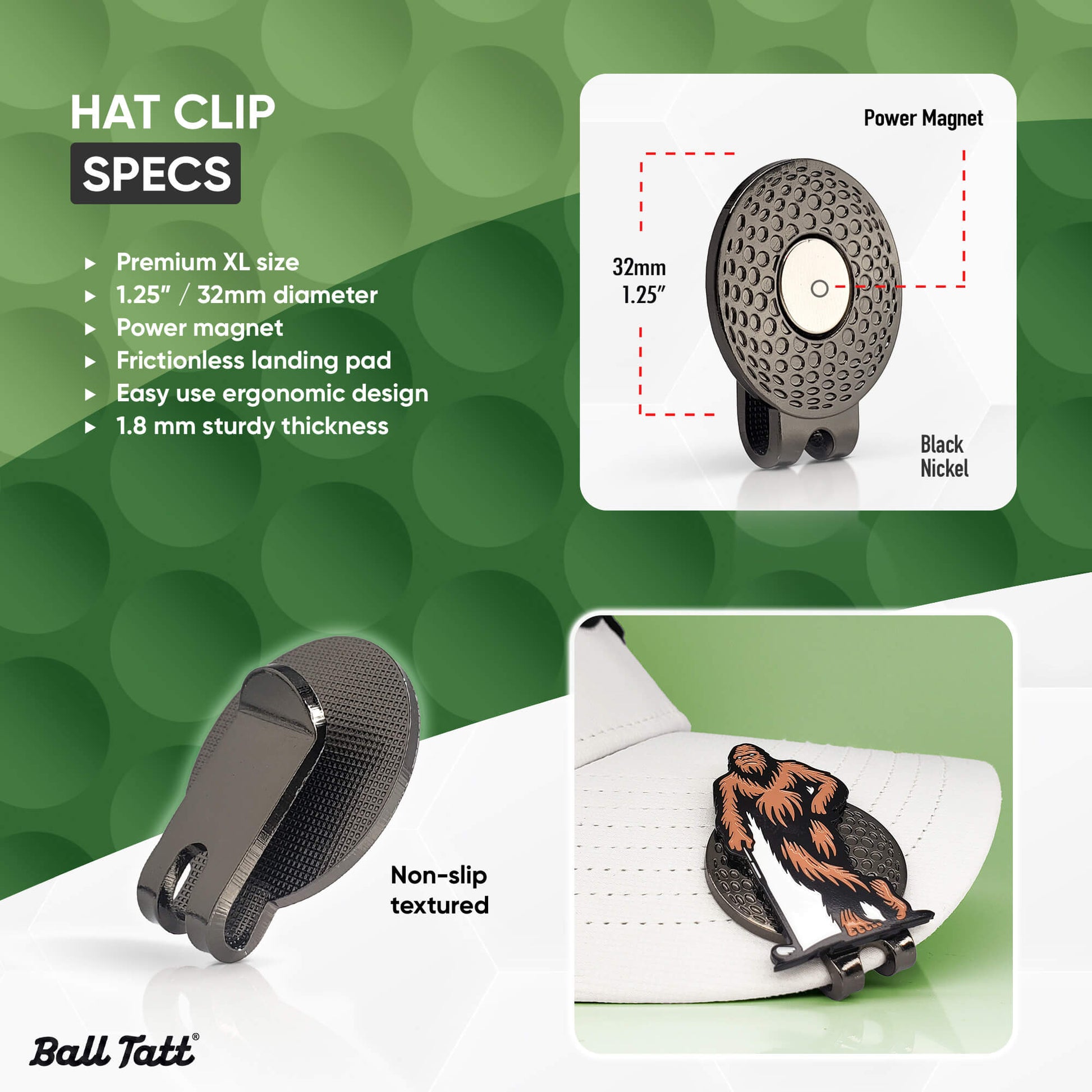- 32mm DIAMETER HATCLIP: Power magnetic with larger landing pad designed for easy snap on and removal of custom sized ball markers - gun metal nickel.