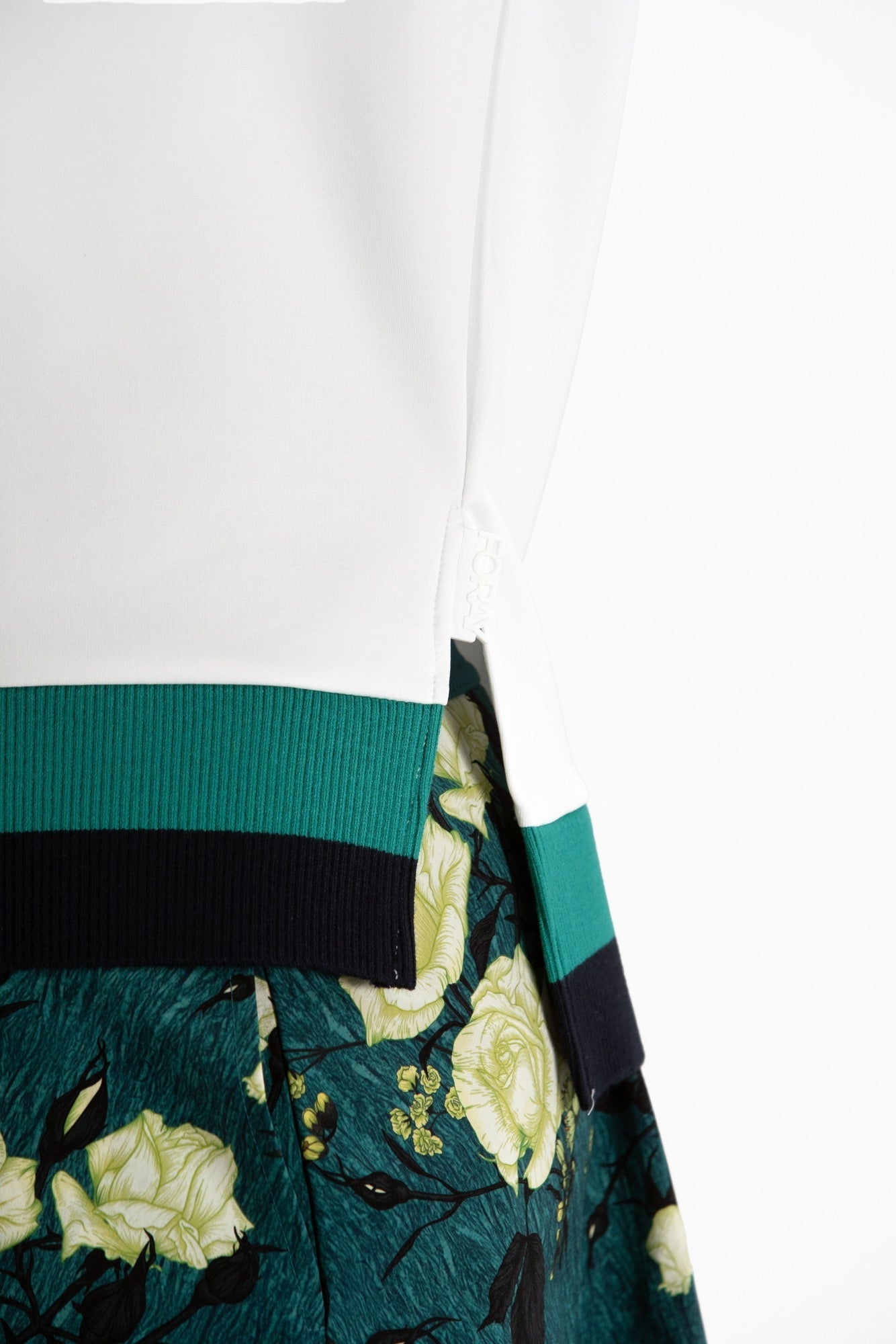 - Matching navy & green rib cuff, hem and collar trim
