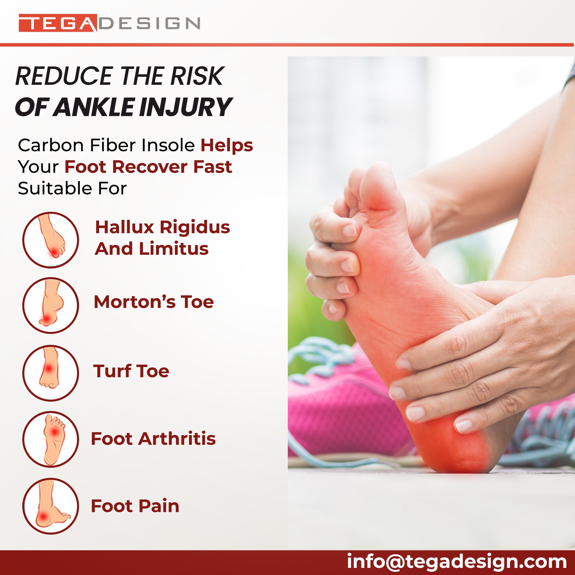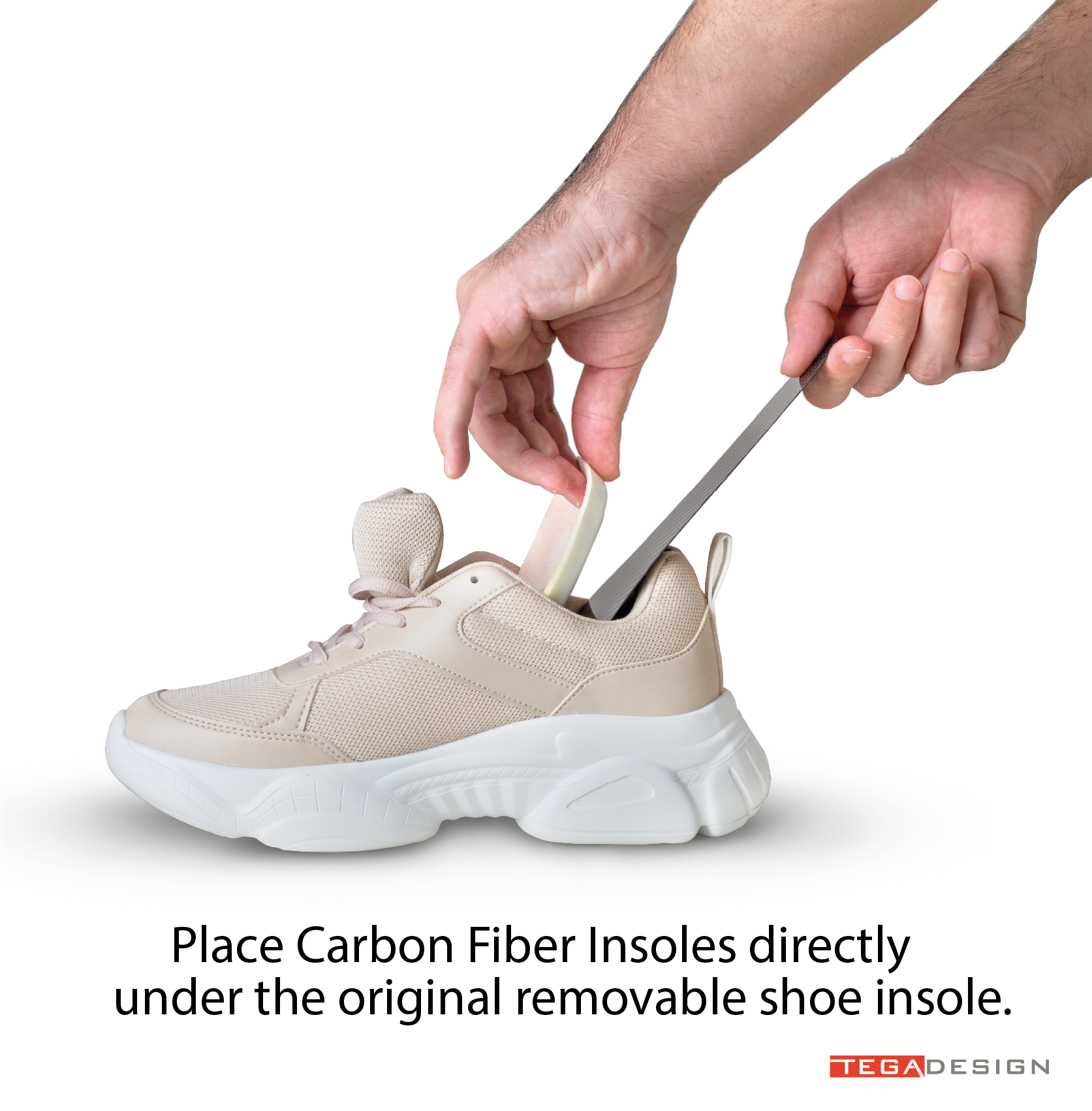 Semi-rigid carbon fiber insoles combines flexibility with support for comfort and stability for foot injuries like metatarsal stress fractures, mid-foot sprains.
