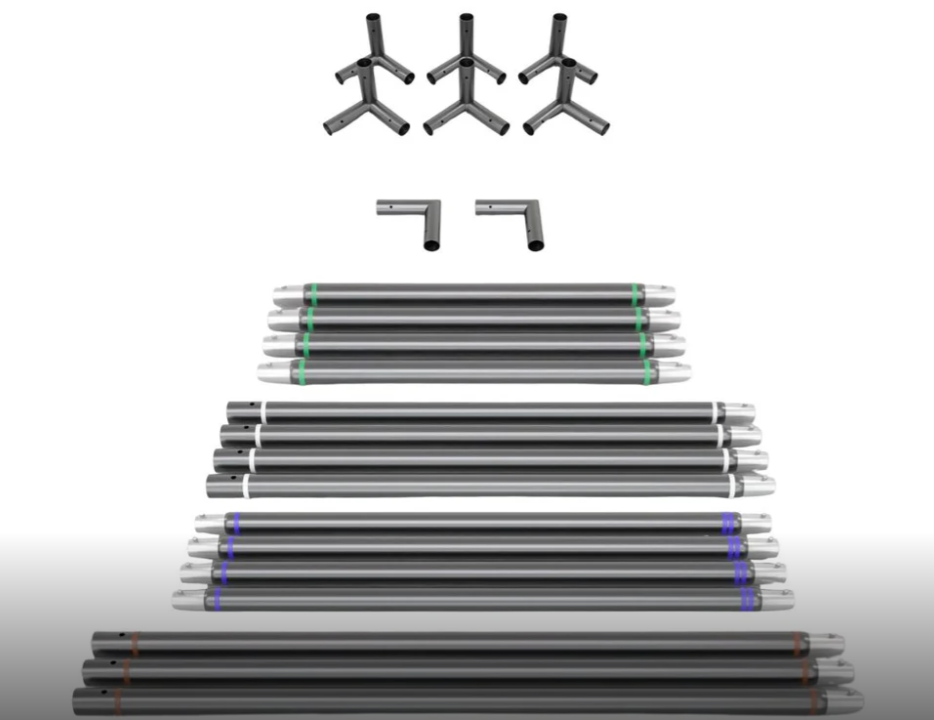 The resources below will walk you through the assembly portion of your new frame and screen. Using the color coded pipe kit and connectors, set up your frame first then attach your black surround, impact screen, foam padding, and side barrier netting.