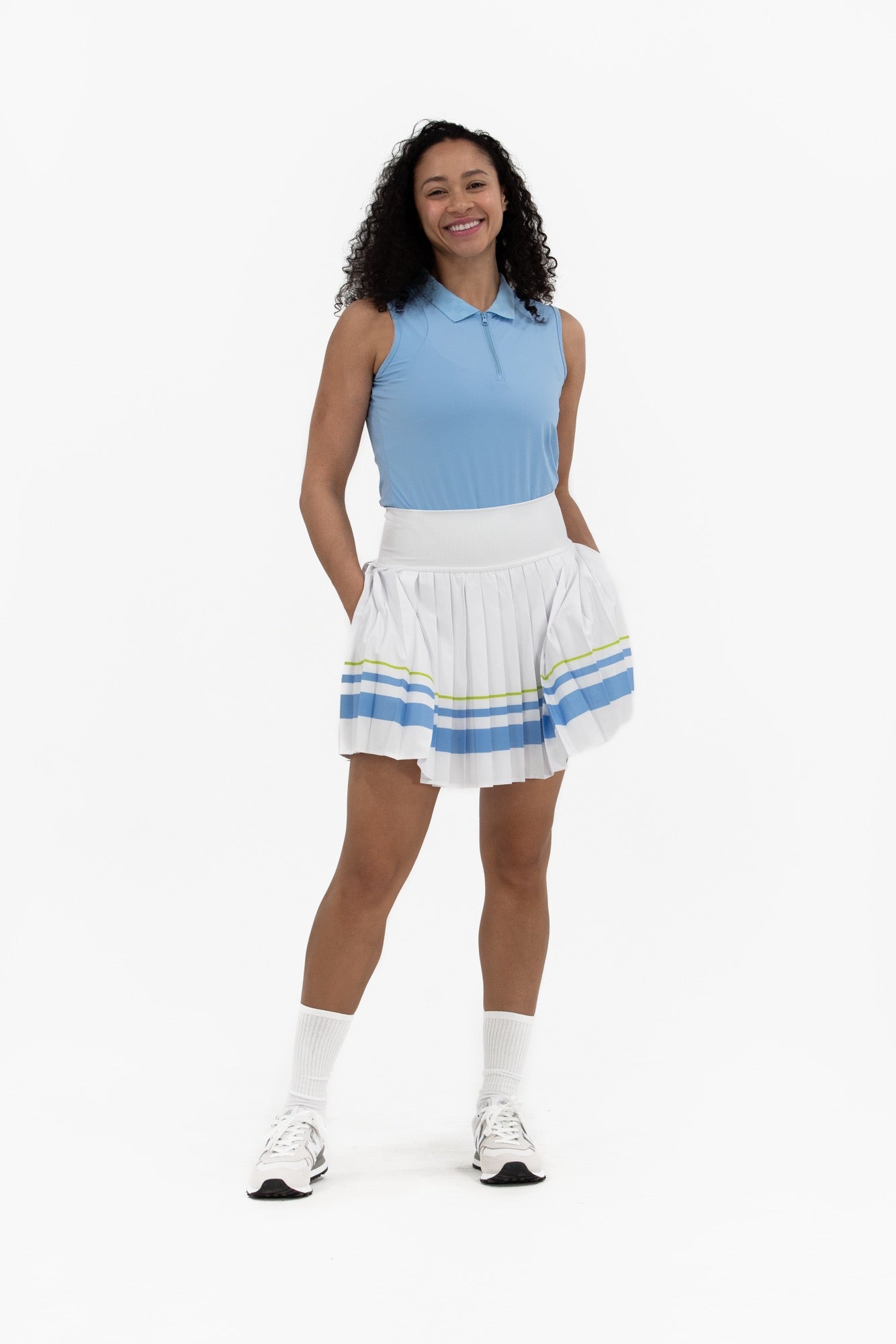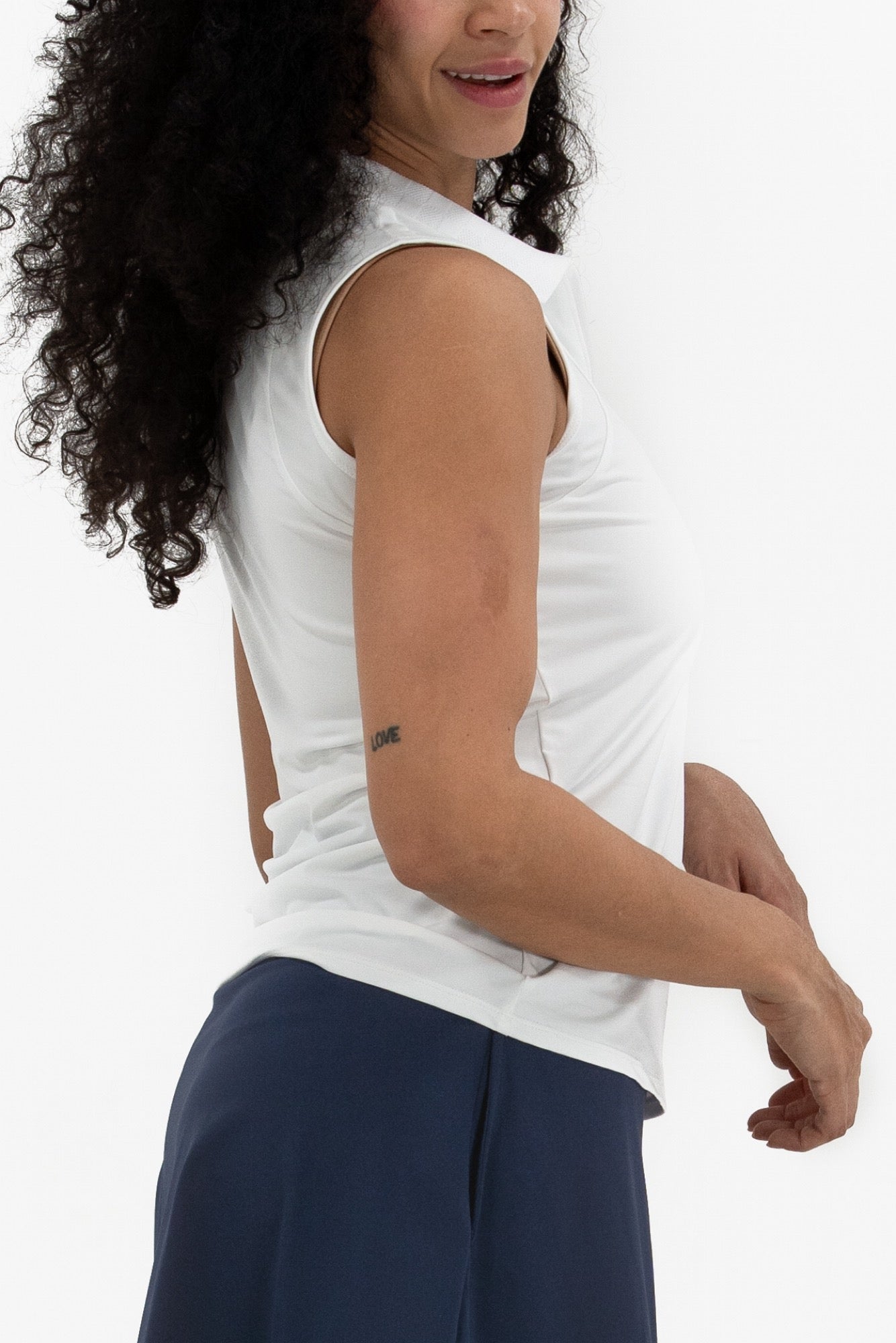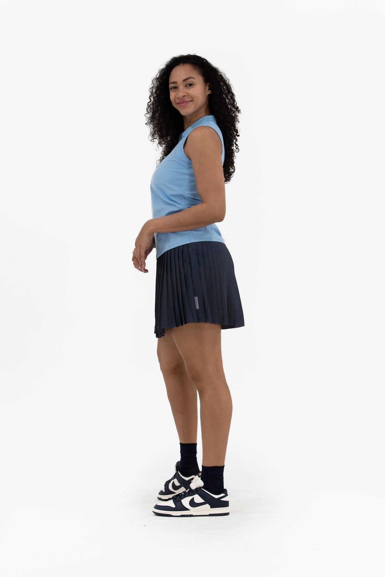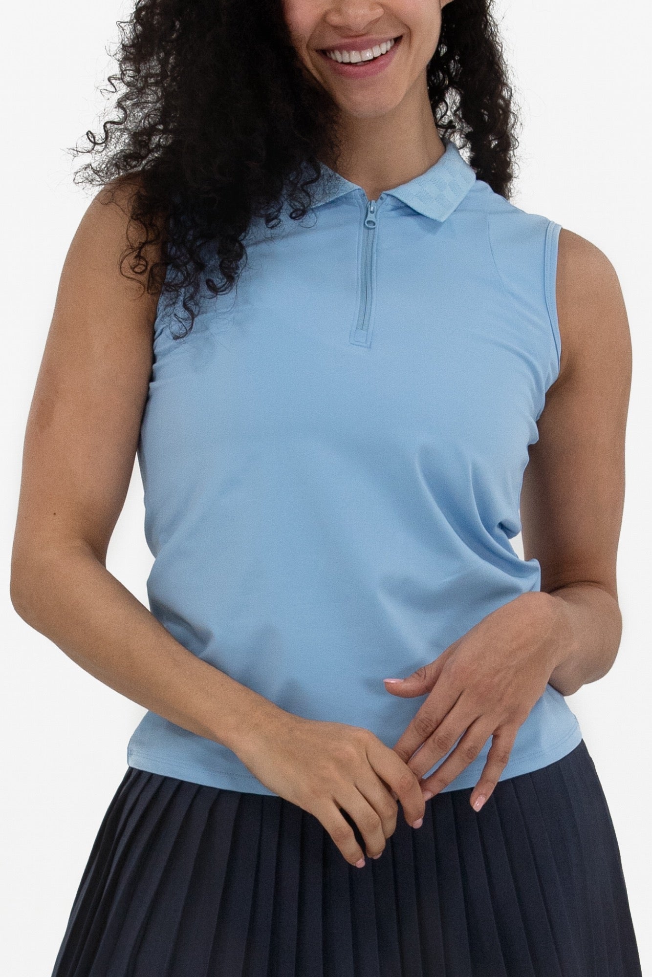 Made from lightweight technical jersey, we're bringing back another of our most loved sleeveless polo shapes. With a zip front placket, she's designed to fit today's sport chic demands. Topped with a subtle, tonal-check knit collar, this piece is easy to pair back to anything you can throw at her.
