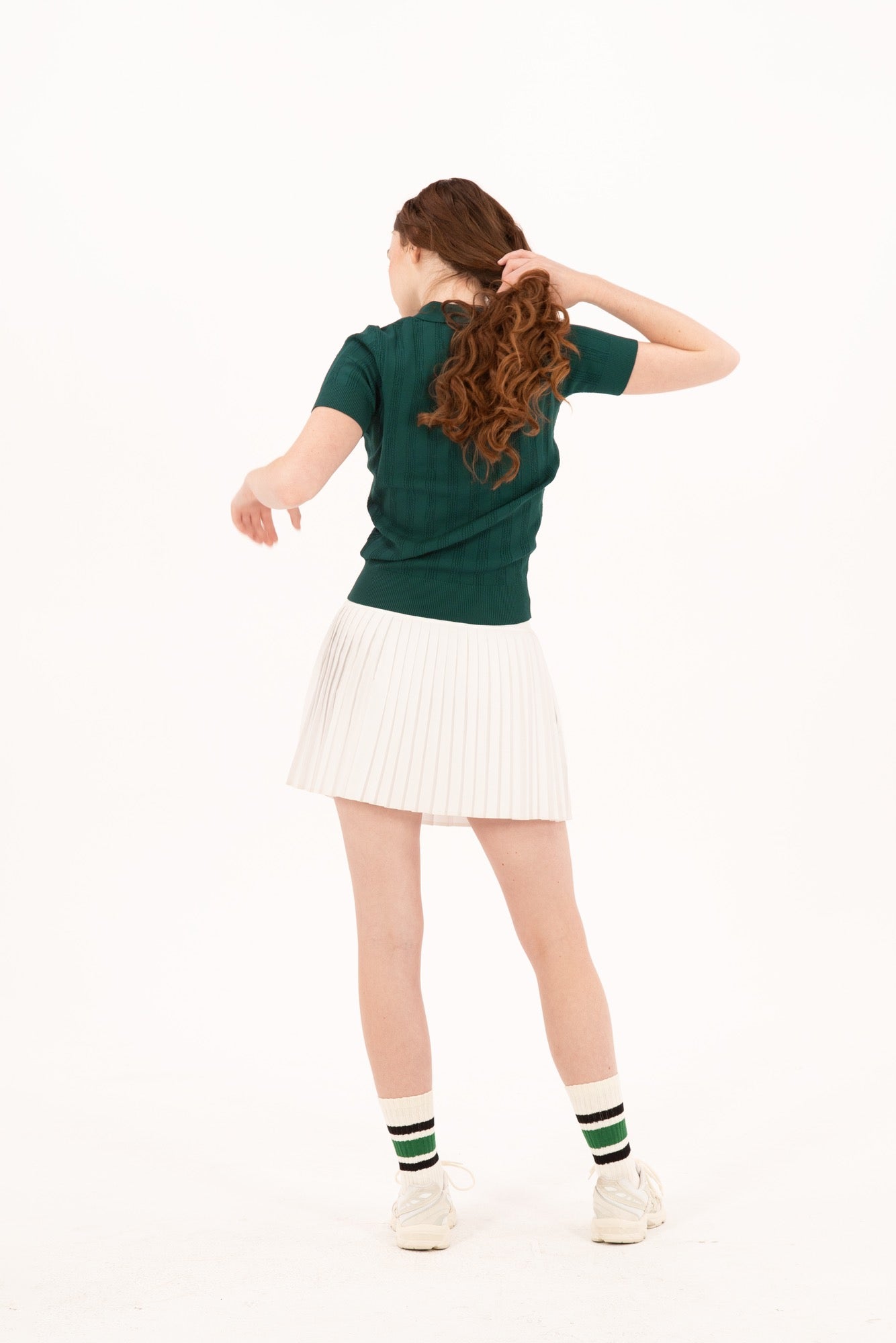This lightweight technical knit polo is made from breathable, high-performance yarns with a fine vertical cable texture woven right in. Soft, stretchy, and fully washable, it keeps its shape and stays cool on the course. Finished with a ribbed collar, hem, and sleeve cuffs for a polished, tailored look.