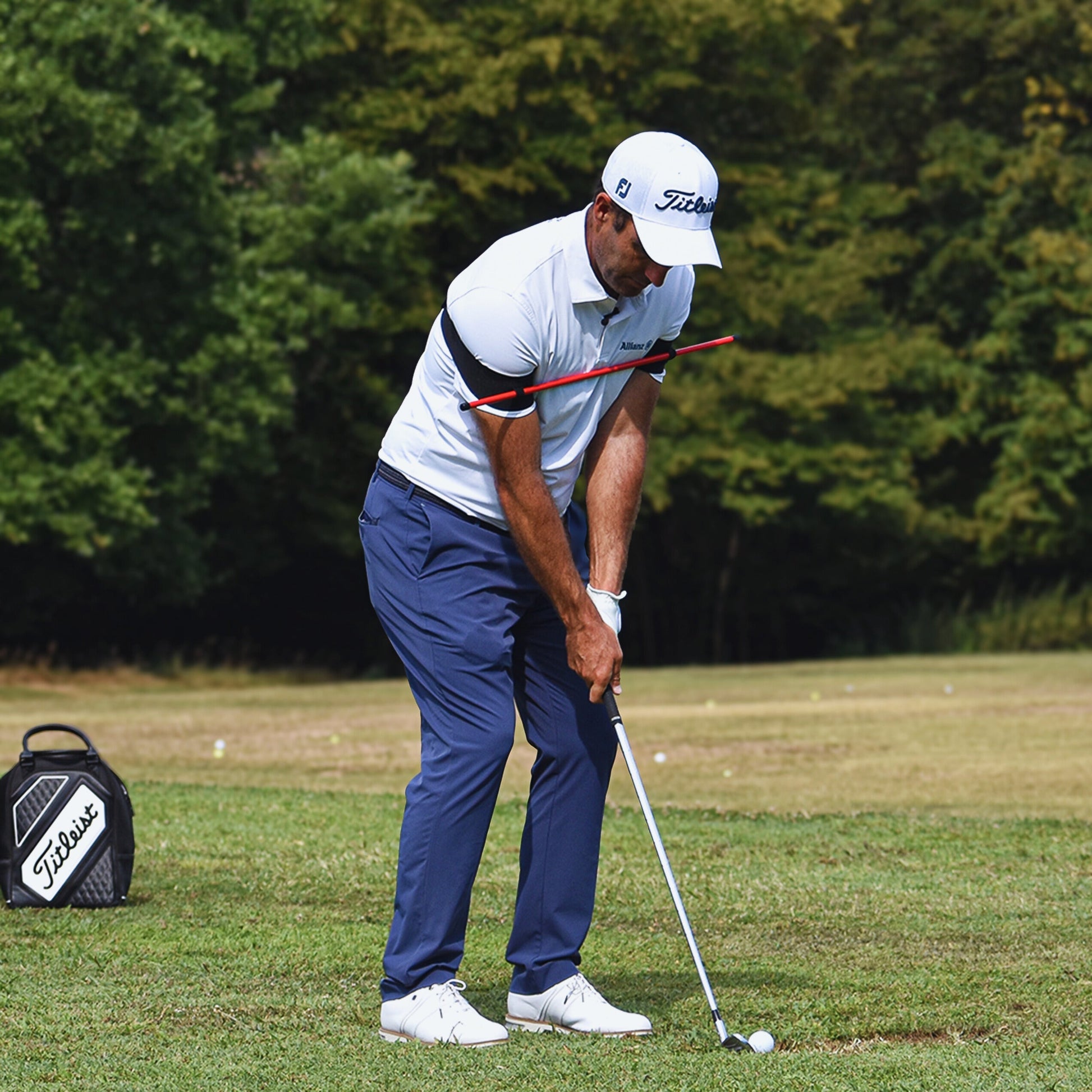 The Rotator's unique design combines a secure, elasticated torso strap with strategically placed arm loops and an alignment rod. This powerful combination provides instant feedback on your torso rotation and tilt, allowing you to visualize and execute perfect swing mechanics.