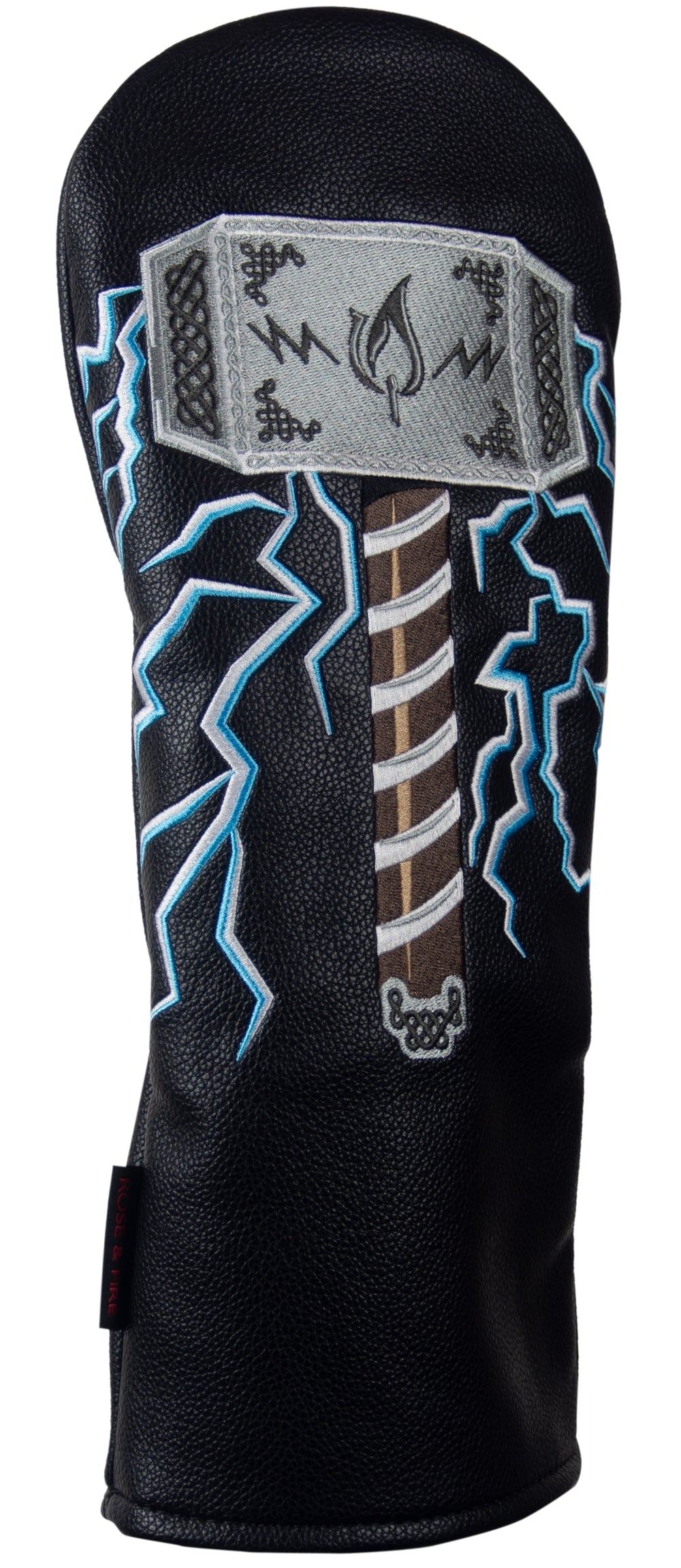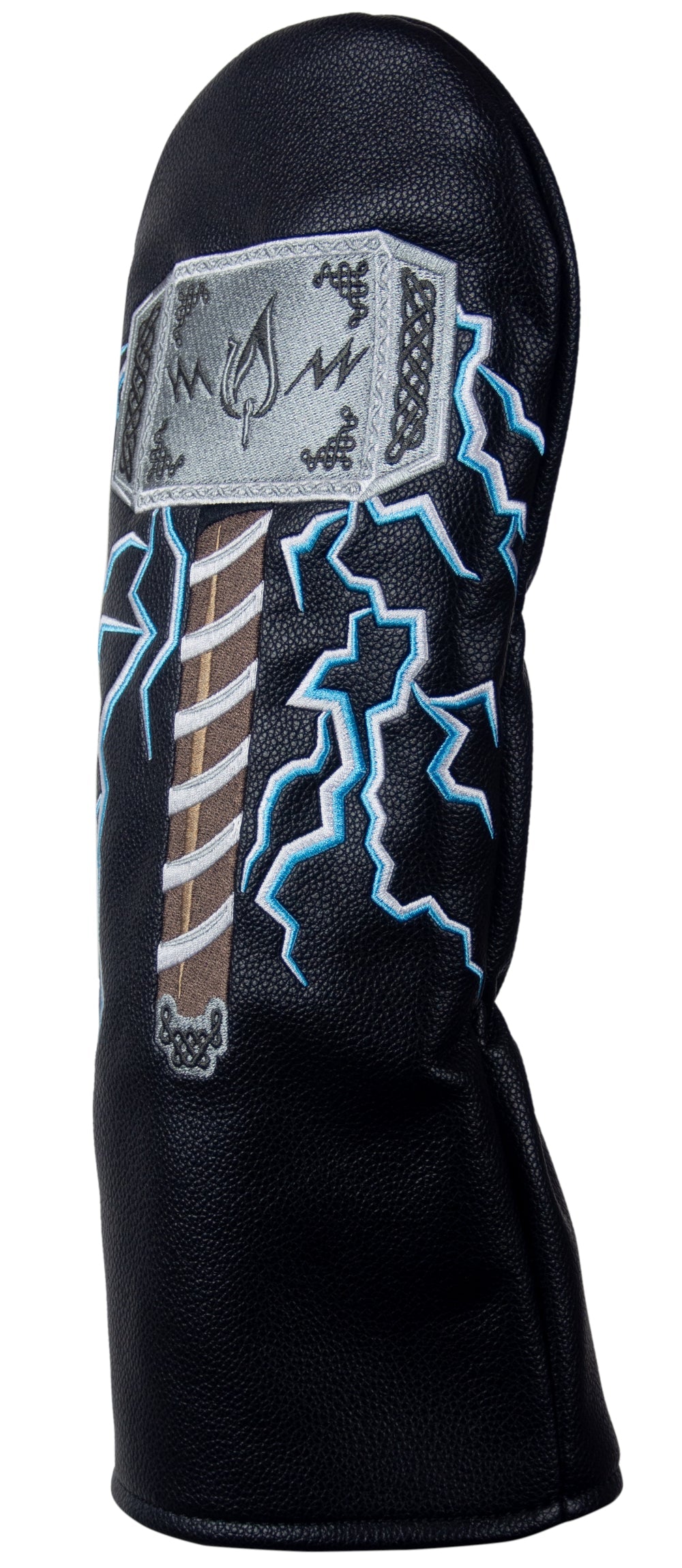 Bring power and precision to your golf game with the Thor Hammer Covers. These covers showcase a striking, embroidered hammer and lightning design. The bold detailing adds a unique touch to your bag, making them a standout choice for golfers who appreciate both craftsmanship and style.
