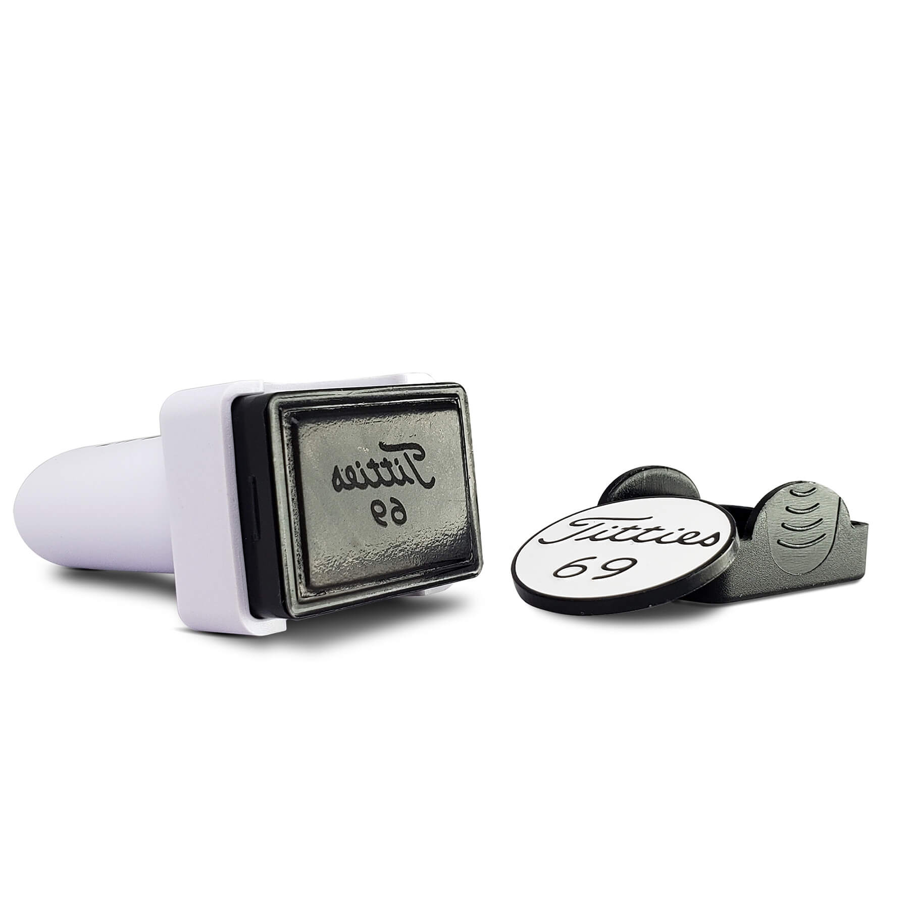 25mm, fits most magnetized divot tools and hat clips. Precision resolution with a thicker 2mm gauge for a more substantive feel. Metal embossed enamel that won't tarnish. Awesome level of detail on our markers!