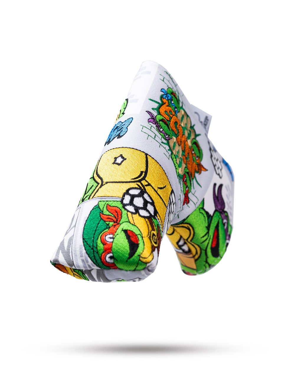 Unleash your inner hero on the golf course with the Pins & Aces x Teenage Mutant Ninja Turtles Collection 2.0 Blade Head Cover. Turn heads on the course with the classic comic strip design that pays homage to the beloved TMNT characters, bringing a playful and nostalgic vibe to your golf gear. Crafted with precision and durability, the head cover ensures your driver stays protected in style. The vibrant colors and iconic comic strip graphics make this limited-edition release a must-have for golfers who crave a unique blend of pop culture and performance. Transform your golf bag into a conversation starter and let the Teenage Mutant Ninja Turtles Collection drive your game to new heights. Cowabunga, golfers – protect your putter with flair!