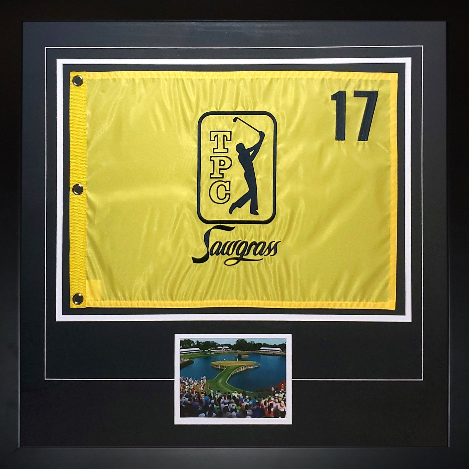 Elevate your golf game with our TPC Sawgrass Deluxe Framed Golf Pin Flag! Featuring the iconic Yellow #17, this flag comes beautifully framed with a photo of the course. A must-have for any golf enthusiast, this flag adds a touch of elegance to any home or office. Perfect for displaying your love of the sport! This is an official TPC Sawgrass Golf Pin Flag that was obtained during tournament week.