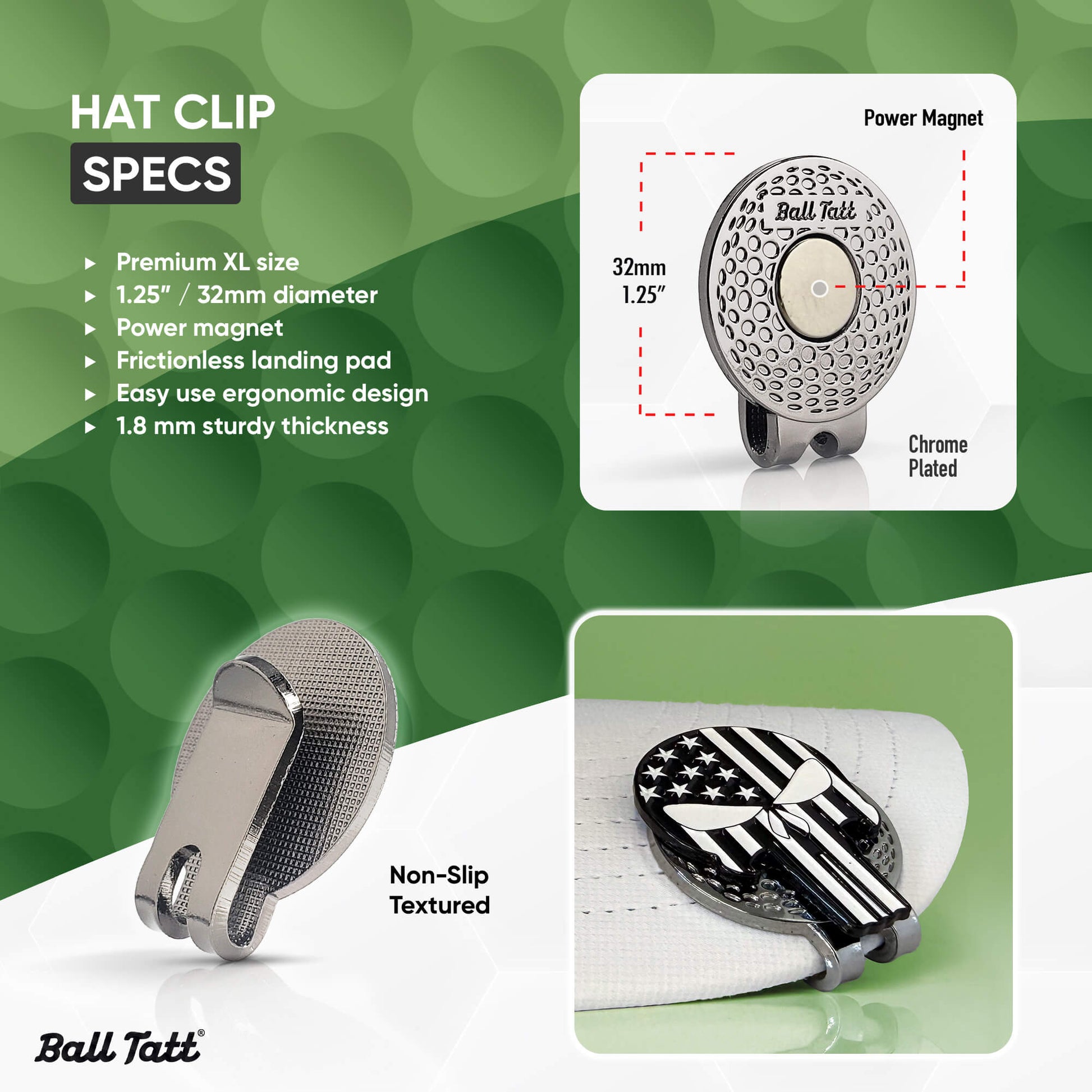- 1.25" DIAMETER HAT CLIP: Power magnetic with larger landing pad designed for easy snap on and removal of custom sized ball markers - chrome plated.