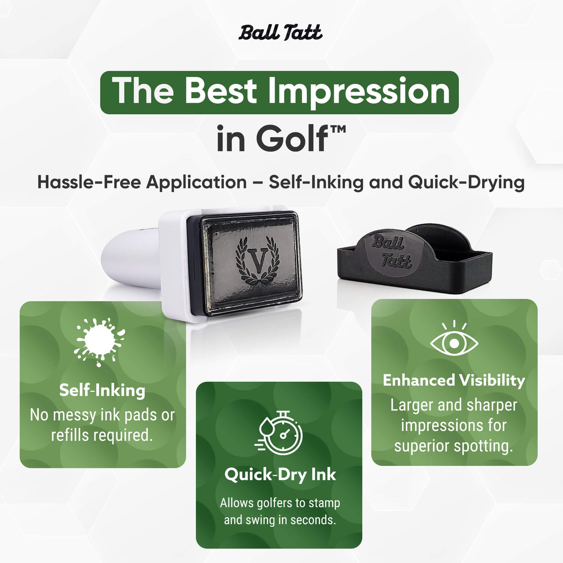 Personalize your golf game with the Ball Tatt V Initial Stamper. Its elegant “V” monogram, framed by a timeless wreath, offers a distinctive, stylish way to mark your ball.