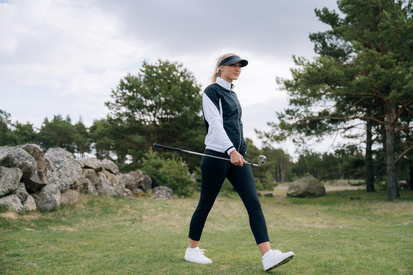 Elite 7/8 trousers mid waist is made of a functional material in 4-way stretch that is also very breathable. The fabric has drycool and wicking effects. Flexible waist, two front and two back pockets. Belt loops around waist allows a belt, slightly shorter length that works just as well on course as off course.