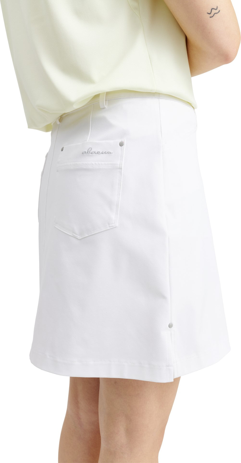 Elite skort is made of a 4-way stretch, soft functional material that is also very breathable. The fabric has drycool and wicking effects. Two front and two back pockets give room for the necessities. The right back pocket also has a silicon tape to keep the score card in place. Zipper in left side. Inner shorts in soft jersey. Beltloops around waist allows for a belt. Length of skort is 17" (45 cm).